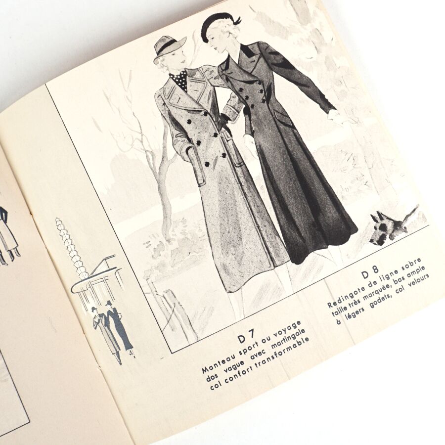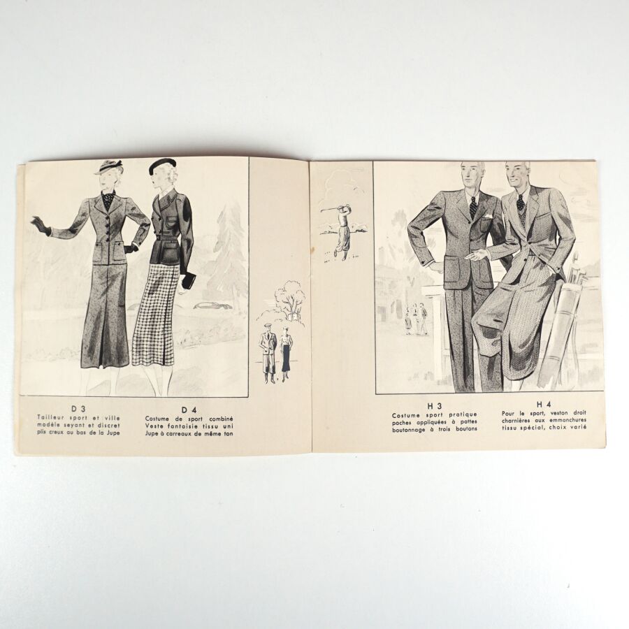 Petit catalogue présentant, pour la première fois depuis 37 ans, des modèles féminins en plus des modèles traditionnels masculins. Il est enrichi de deux feuillets volants du grand magasin : un bon d'une remise de 5% et les tarifs en vigueur au 1er octobre 1937.