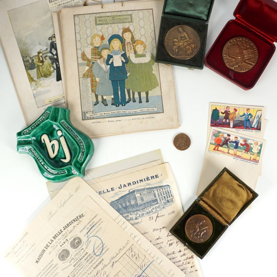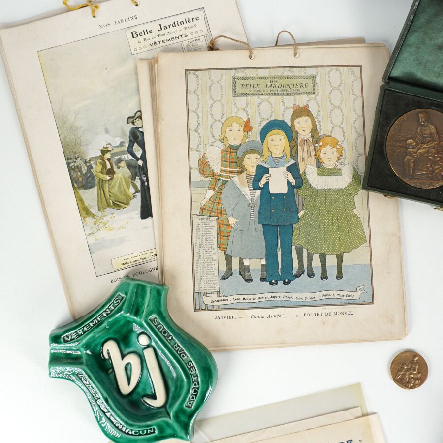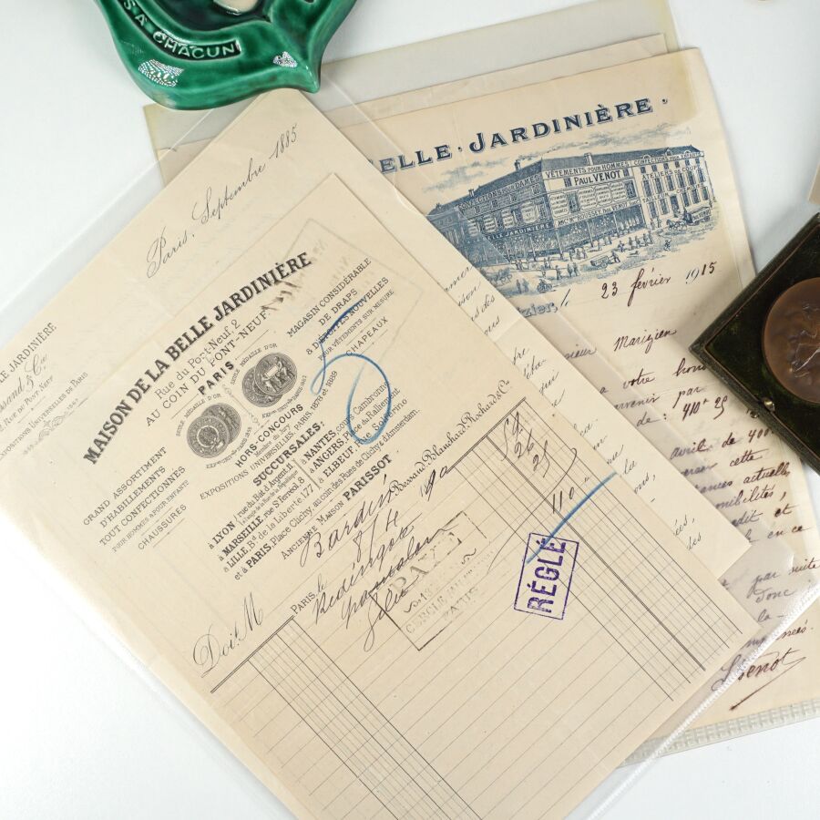 Grands Magasins LA BELLE JARDINIÈRE. Bel ensemble de catalogues et supports promotionnels des grands magasins parisiens A la Belle Jardinière, dont : - une L.A.S. sur papier à entête de Mme L. Venot (veuve du directeur Paul Venot), 23 février 1915, à un fournisseur + une L.T.S. du 20 juin 1934 de la direction sur papier à entête