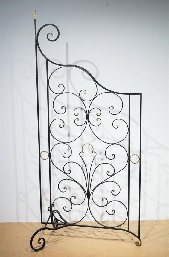 Grille de séparation en fer forgé à motif d'entrelacs stylisés, travail artisanal, 20e siècle, L. 90 cm, H. 204 cm.