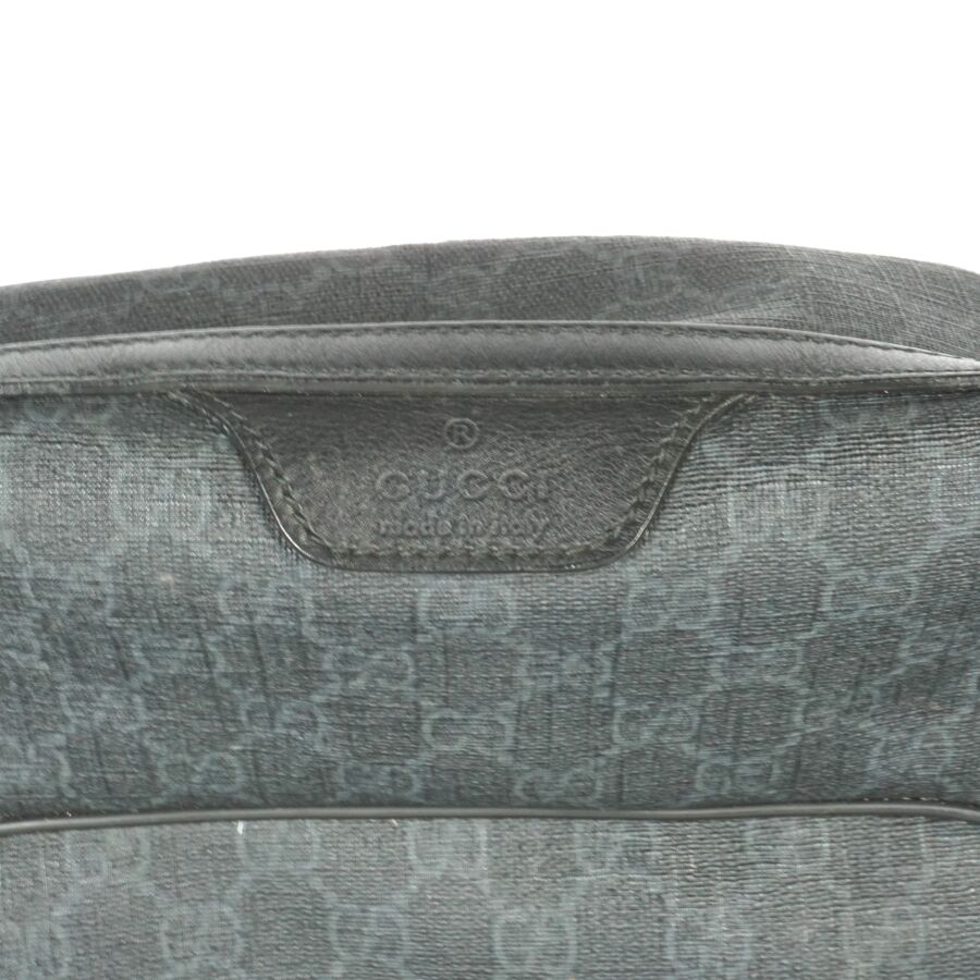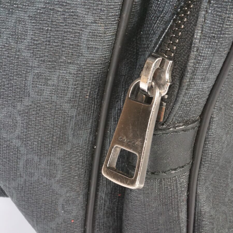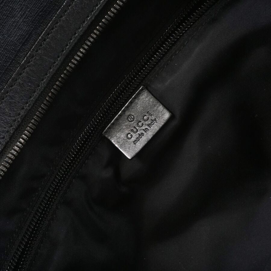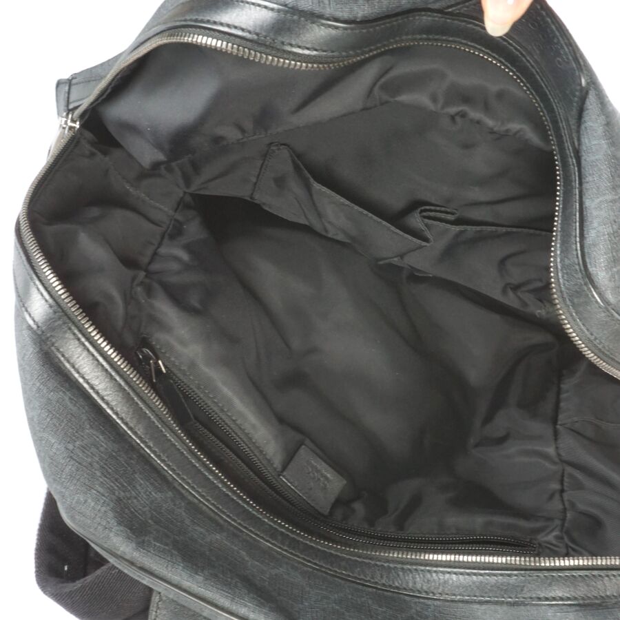 GUCCI : Sac à dos en cuir lisse de couleur noire et toile enduite monogrammée à motif noir sur fond gris foncé, fermeture principale zippée, une anse supérieure en cuir noir, pochette extérieure à l'avant zippée, intérieur en tissu noir, pochette interne zippée avec plaque en cuir logotée et numérotée, avec ses bretelles noires réglables, présenté dans son dustbag d'origine et avec sa carte de la Maison, Dim. 40 x 38 x 15.5 cm (bel état).