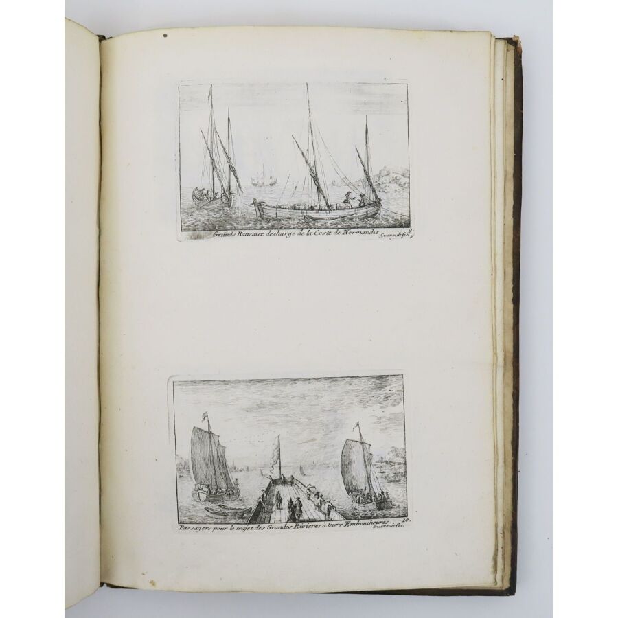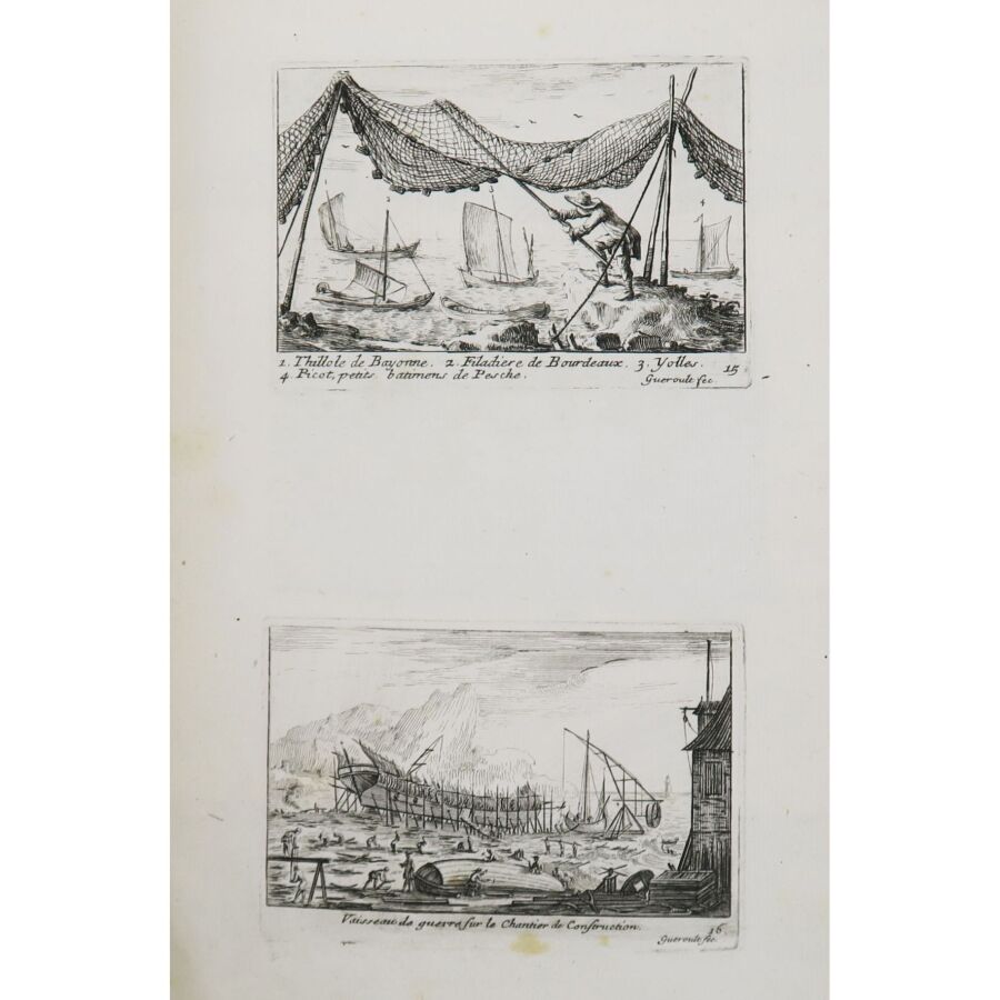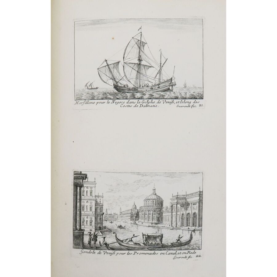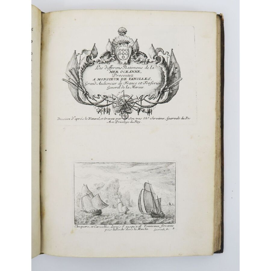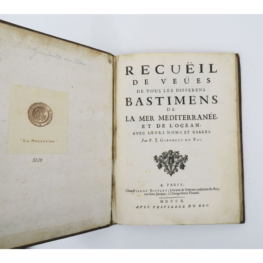 GUEROULT DU PAS (Pierre Jacob). Recuëil de veües de tous les différens bastimens de la mer Méditerranée, et de l'océan, avec leurs noms et usages. Paris, Giffart, 1710. In-4 veau granité, dos à nerfs orné, roulette dorée sur les coupes.