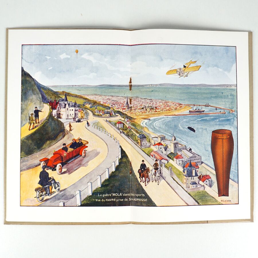 Il est illustré d'une composition en couleurs sur double-page par Laroche, montrant des personnages vêtus de la guêtre Mola pour les ""sports"" avec une vue du Havre prise de Sainte-Adresse, et de diverses illustrations en noir et blanc dont des vues intérieures des différents secteurs de l'entreprise.