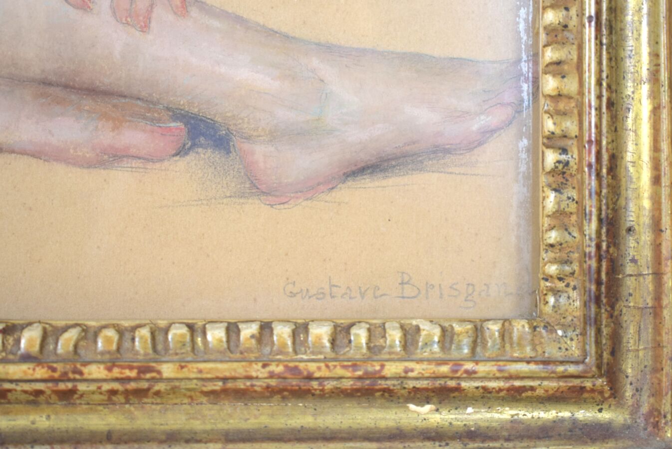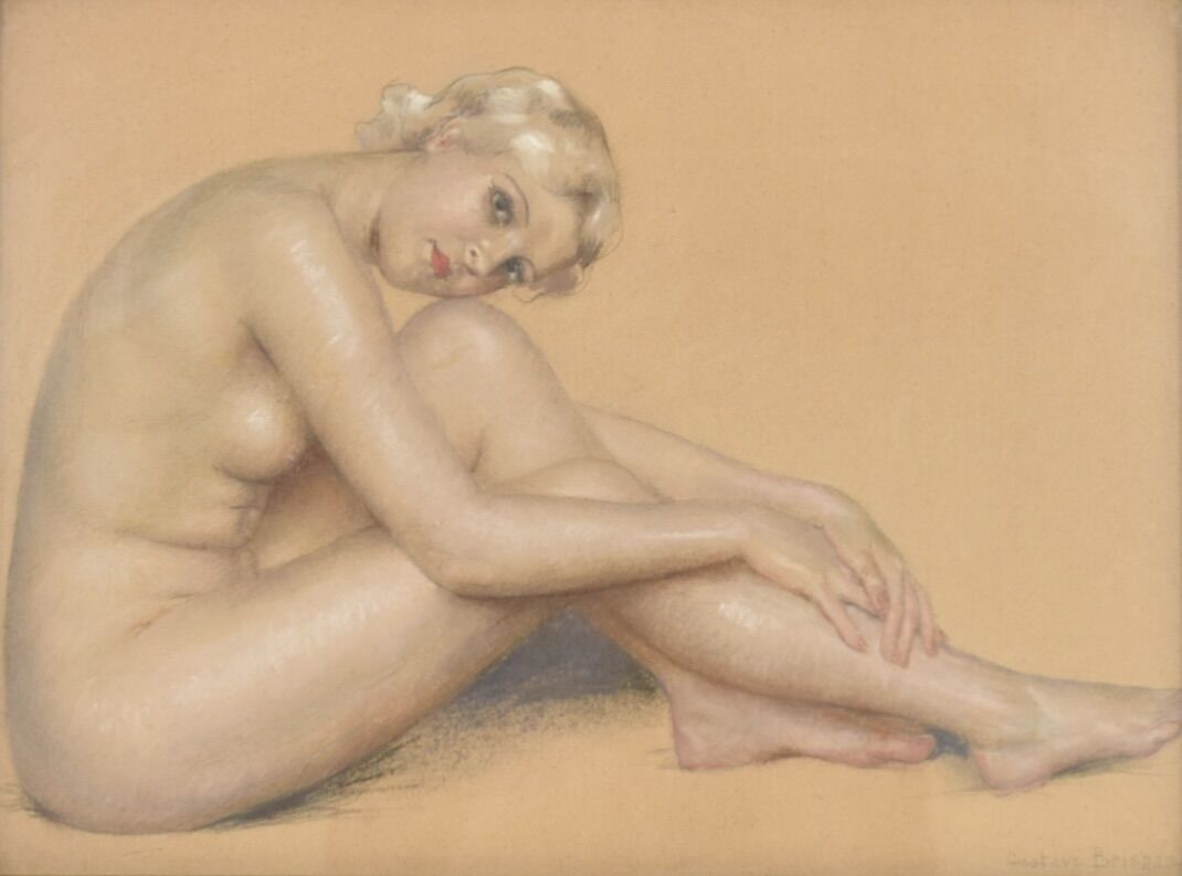 Gustave BRISGAND (1867-1944), "Nu féminin", dessin au pastel sur papier brun, signé en bas à droite, 23 x 31.3 cm (à vue)