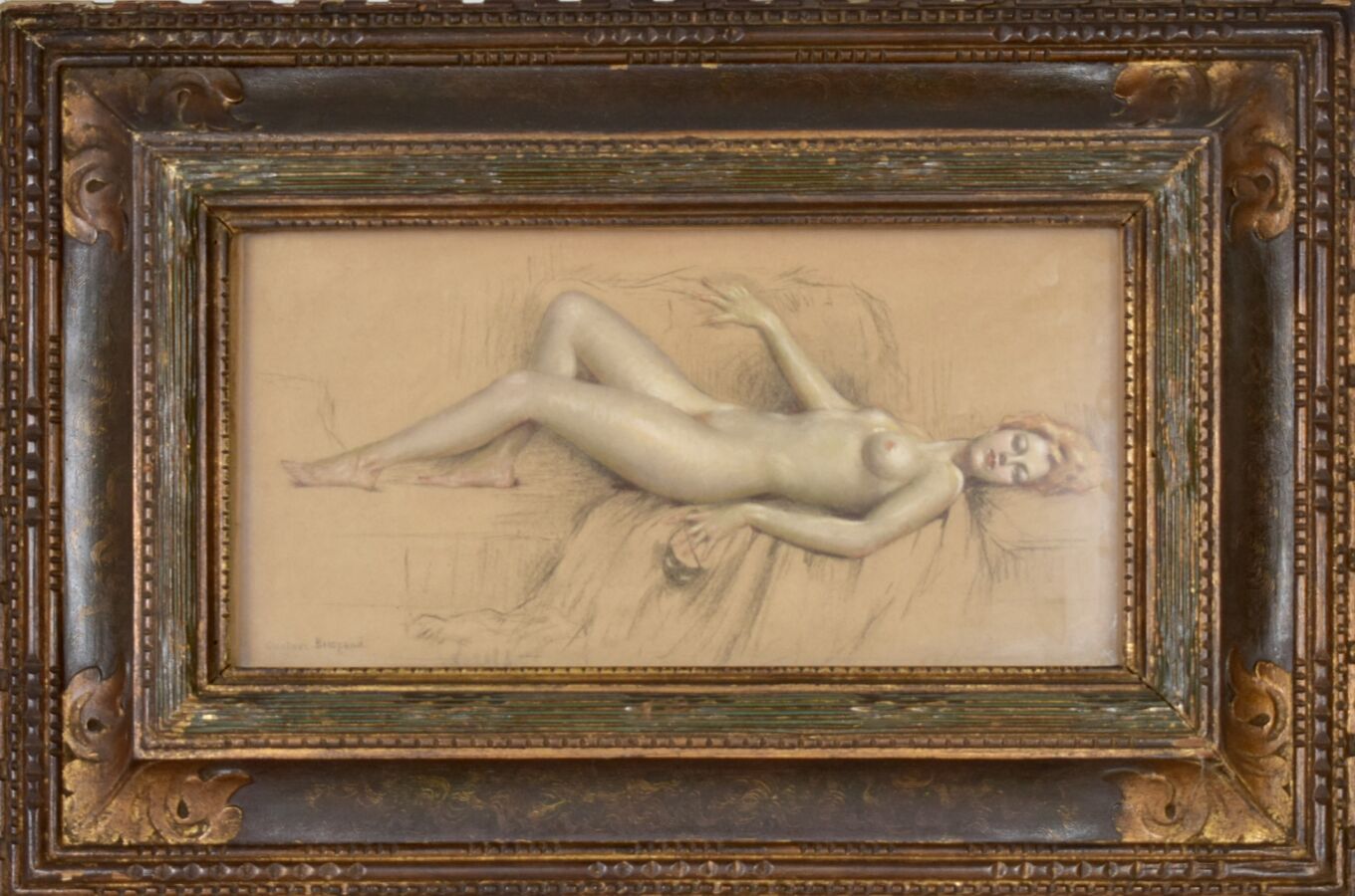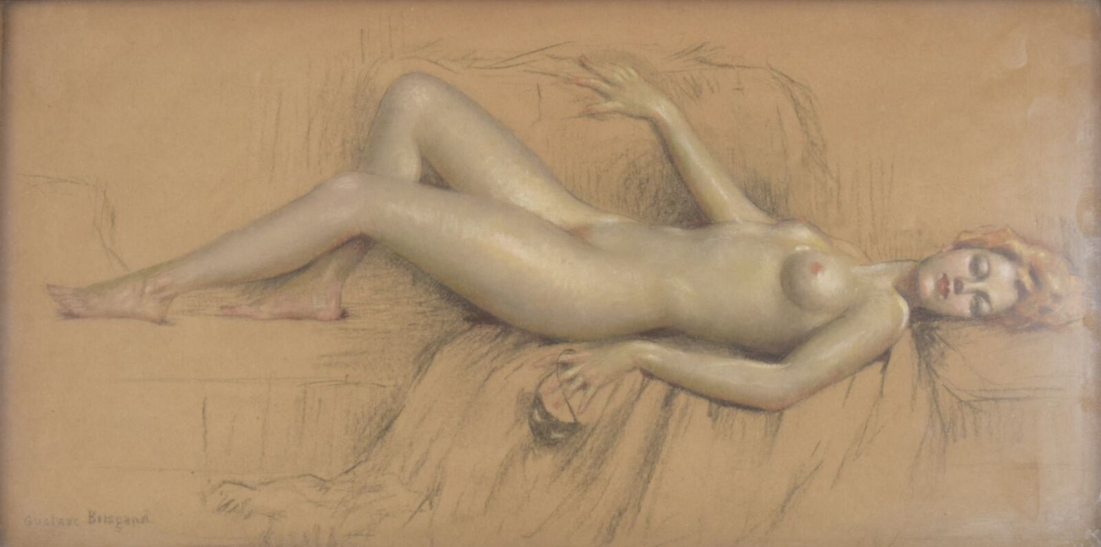 Gustave BRISGAND (1867-1944), "Odalisque", dessin au pastel sur papier brun, signé en bas à gauche, 15.5 x 31 cm (à vue)