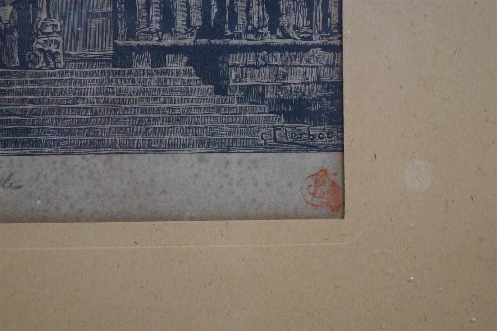 Gustave CLERBOUT (XX), "Porte de la Cathédrale Saint-Paul", eau-forte, signée dans la planche en bas à droite, porte un cachet, située en bas à gauche, 24 x 14 cm