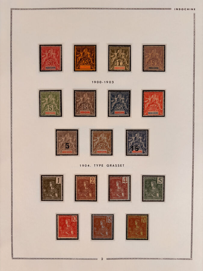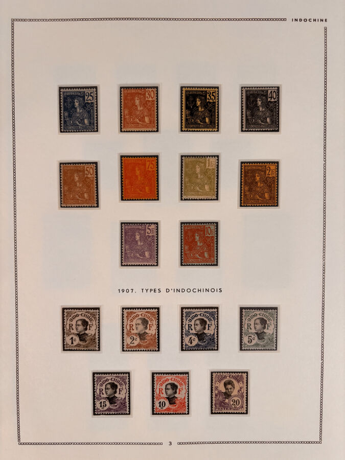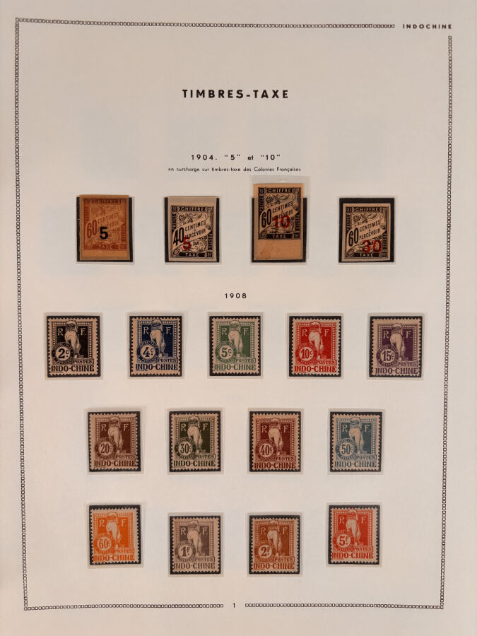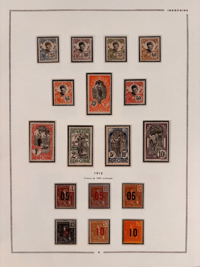 H te VAOLTA - INDE - INDOCHINES - ININI - KOUANG TCHEOU: Dans un album MOC avec pochettes, belle collection de TP N**, N*, bonne valeurs, des fac-similés, forte cote.