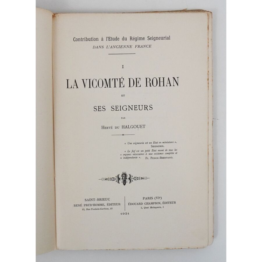 HALGOUET (Hervé du). La Vicomté [et le Duché] de Rohan et ses seigneurs. Saint-Brieuc, Prud'homme et Paris, Champion, 1921-1925. 2 vol. in-8 brochés, couv. imprimée.