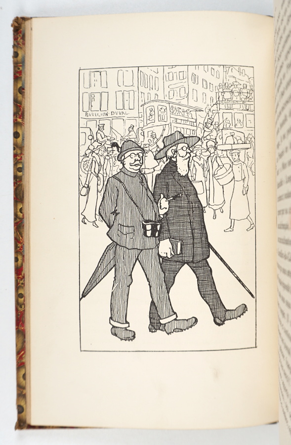 HANSI [Jean-Jacques Waltz, dit] - Professor Knatschké. OEuvres complètes du grand savant allemand et de sa fille Elsa. Recueillies et illustrées par Hansi. Fidèlement traduites en français par le Dr H. P. Colli - Paris ; Librairie Floury, 1912 - 1 volume In-8° - Frontispice et illustrations en noir in et hors texte par Hansi - Reliure de l'époque demi-basane vert olive (coins usés) - Couvertures illustrées couleurs conservées - Dos à nerfs orné et titré or - Bon exemplaire.