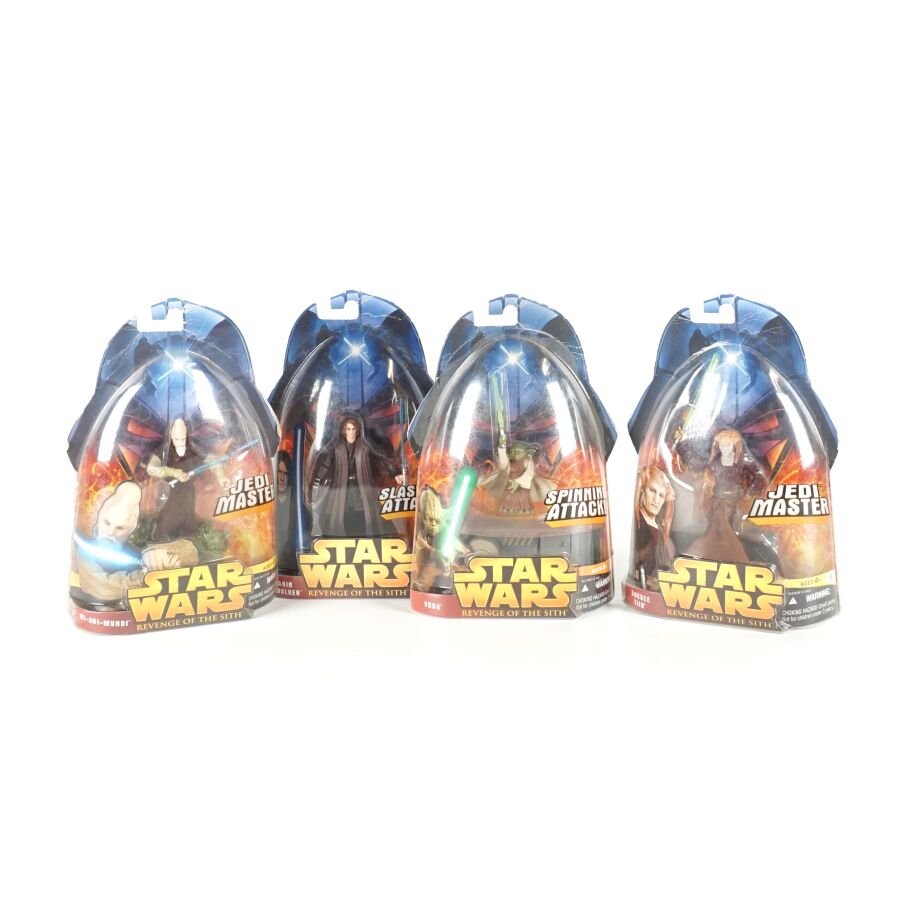 HASBRO - STAR WARS : Ensemble de 4 figurines sous blister "La revanche des Sith", comprenant (1) Yoda ; (1) Ki-Adi-Mundi ; (1) Anakin Skywalker et (1) Saesee Tiin (bel état).