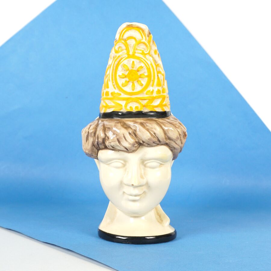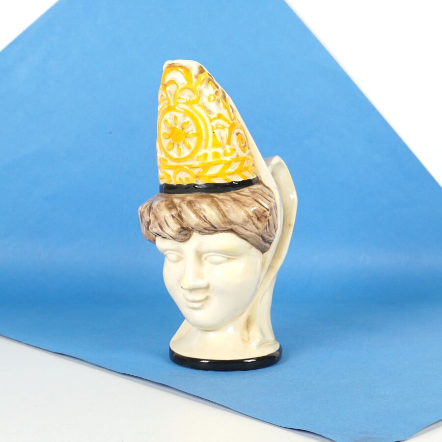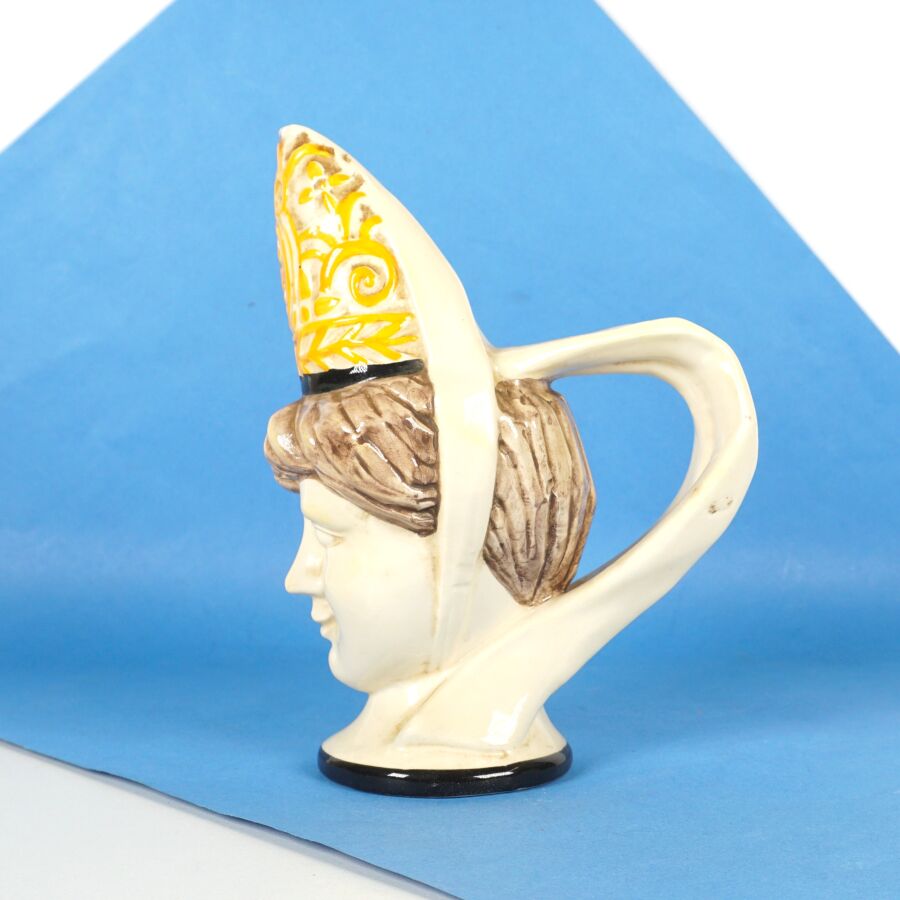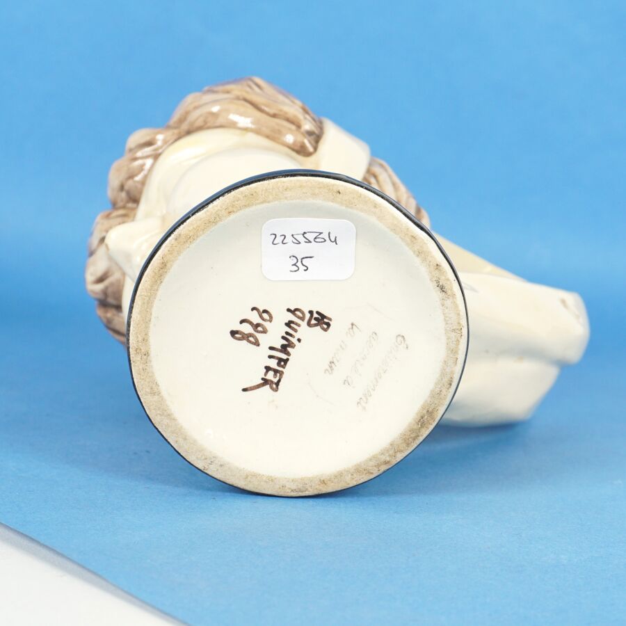HB QUIMPER : Pichet "Bigoudène" en faïence émaillée polychrome, marqué dessous, H. 20.5 cm.