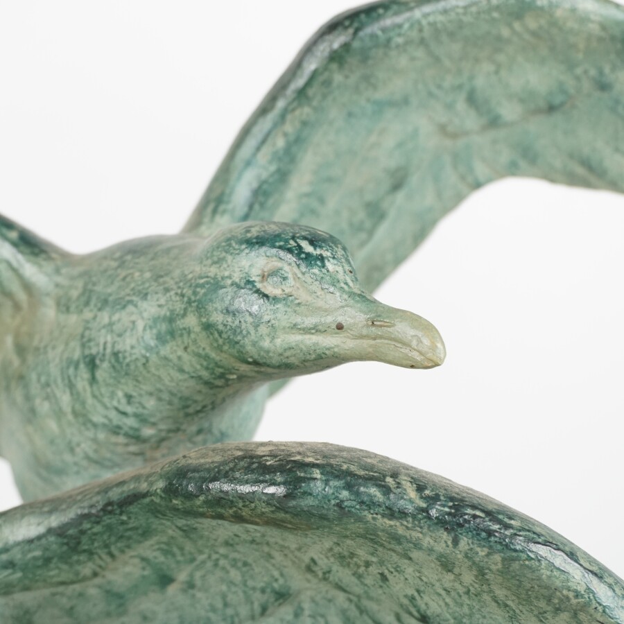 Henri BARGAS (XXe), "Mouette en vol", épreuve en terre-cuite à patine verte à l'imitation du bronze, signée sur la terrasse, H. 40 cm.