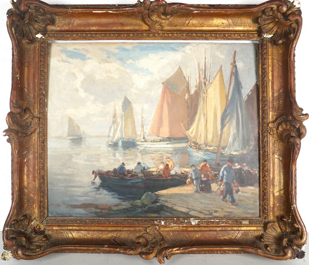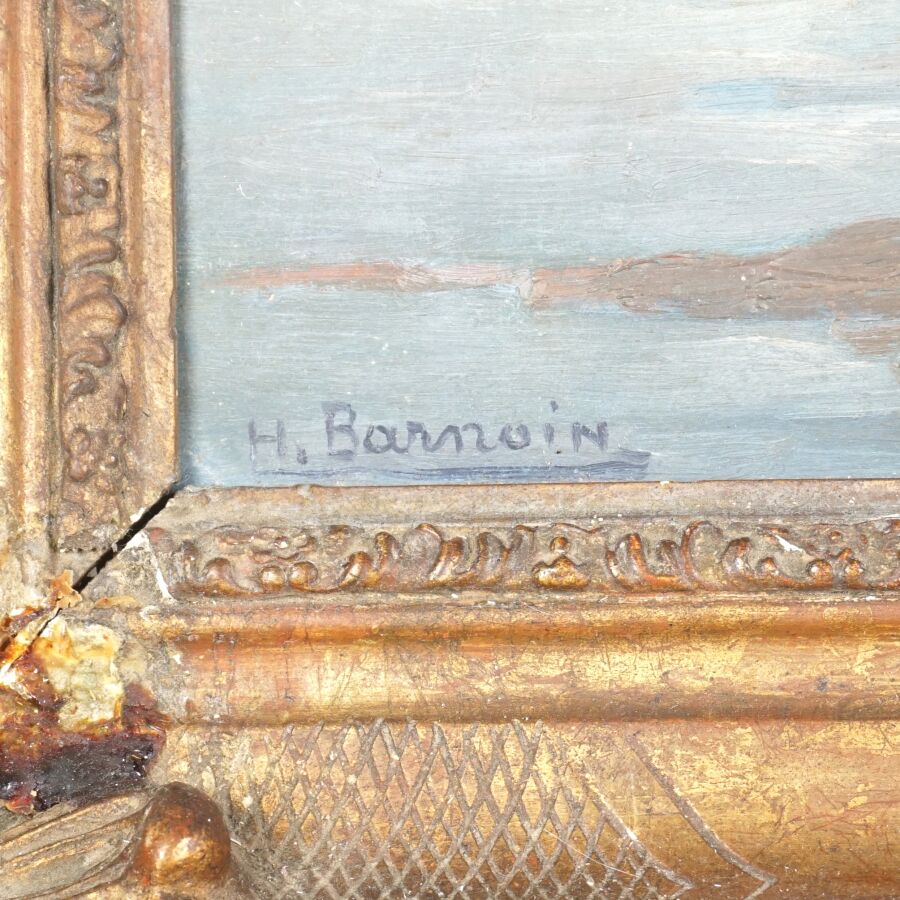 Henri BARNOIN (1822-1940), "Retour de pêche", huile sur panneau signée en bas à gauche, 38 x 46 cm.