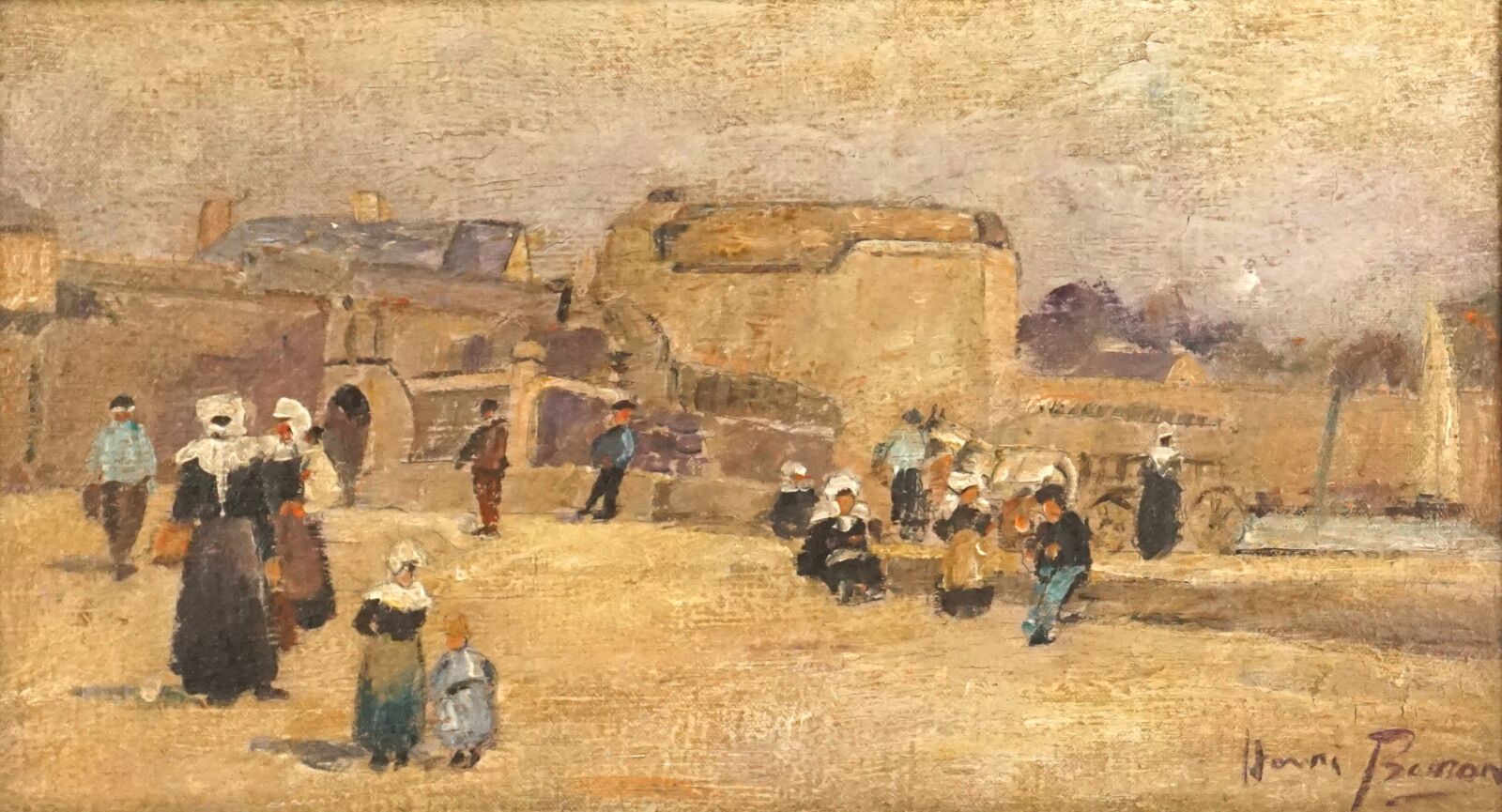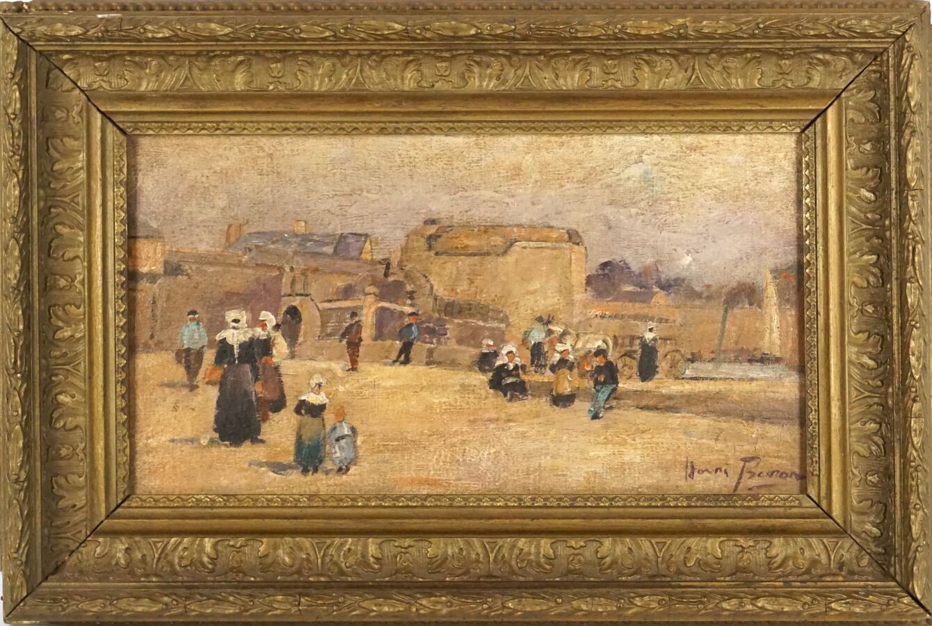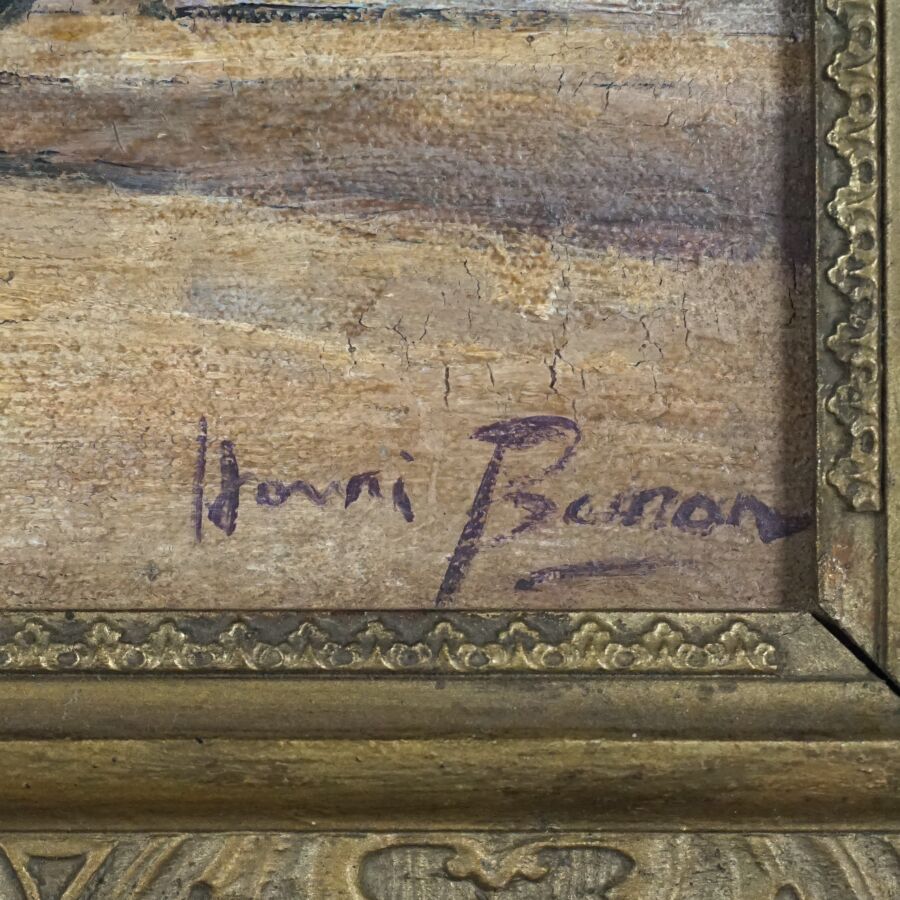 Henri BURON (1880-1969), "Port de Concarneau", huile sur toile signée en bas à droite, 18 x 33 cm.