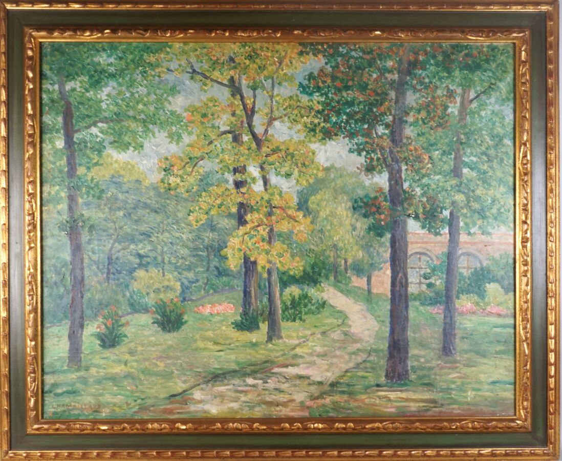 Henri Ernest PONTHIER DE CHAMAILLARD (1862-1930), "Le manoir de l'artiste", huile sur toile signée en bas à gauche, étiquette d'exposition au dos "Gauguin and the Pont-Aven group" cat. n° 229, 72.5 x 91 cm (petites écaillures, accroc à la toile).