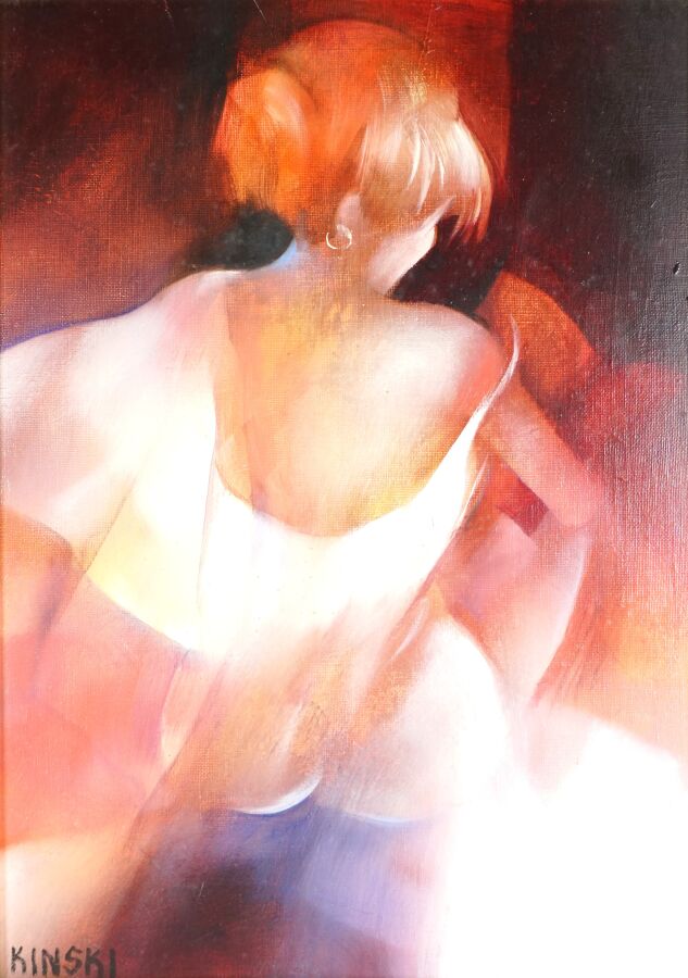 Henrik KINSKI (1954-2011), "Femme assise de dos", huile sur toile signée en bas à gauche, 46 x 33 cm.