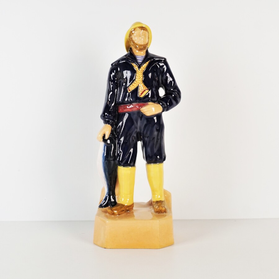 HENRIOT QUIMPER : "Le retour", sujet en faïence émaillée polychrome figurant le retour du pêcheur, marqué dessous et numéroté 164, H. 34 cm (quelques sauts d'émail).