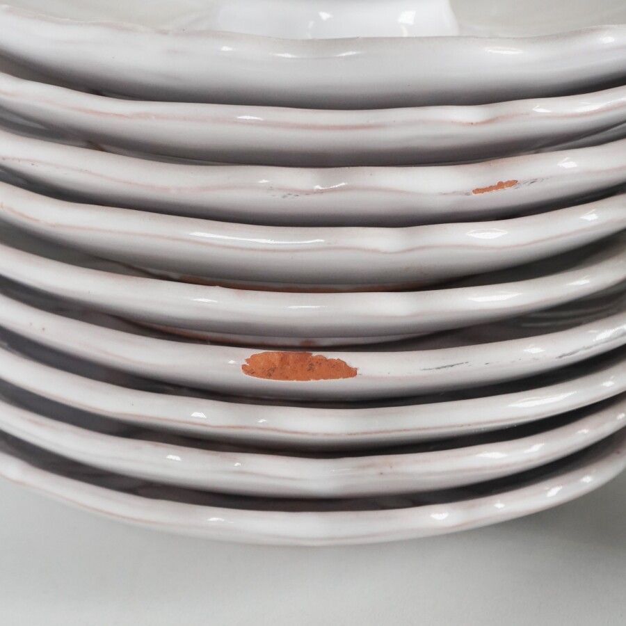 HENRIOT QUIMPER : Partie de service à thé-café en céramique émaillée blanche comprenant 12 tasses et 10 sous-tasses, marqués en-dessous (éclats, fêles).
