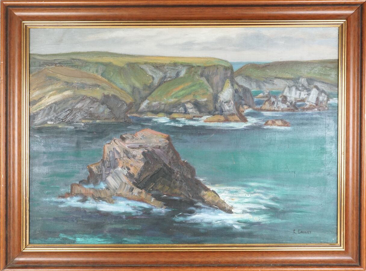 Henry GAULET (1863-1930), "Côte rocheuse", huile sur toile signée en bas à droite, 46 x 65 cm.