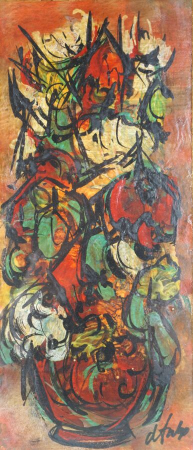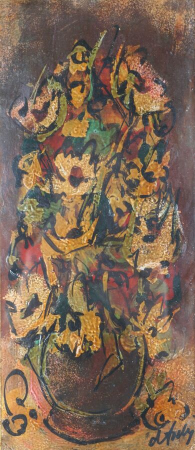 Henry Maurice D'ANTY (1910-1998), "Vases fleuris", paire de techniques mixtes sur carton formant pendant signées en bas à droite, 29 x 12 cm chaque (petite déchirure à gauche pour l'une).