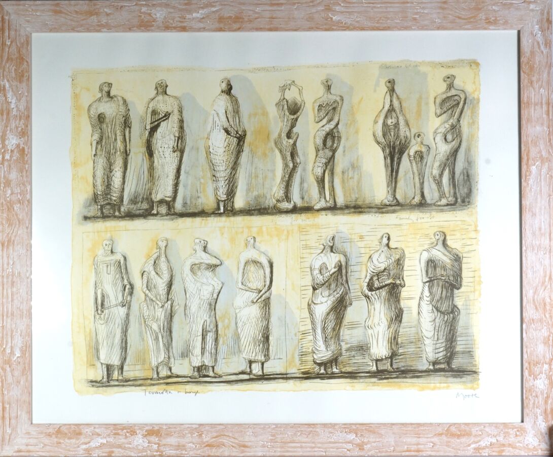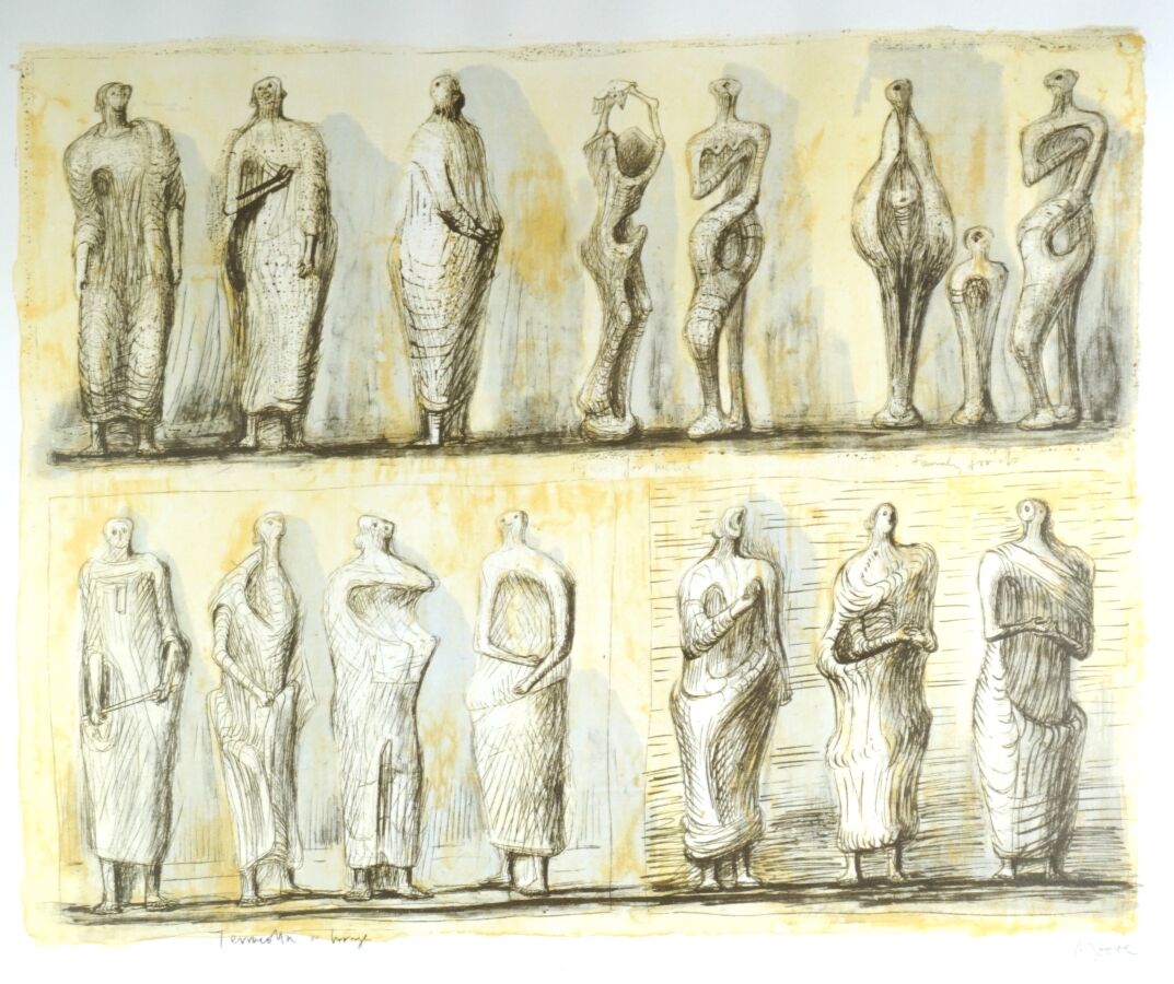 Henry MOORE (1898-1986), "Terracotta ou Bronze", lithographie en couleurs signée en bas à droite et titrée dans la planche en bas à gauche, 66 x 81 cm (à vue).