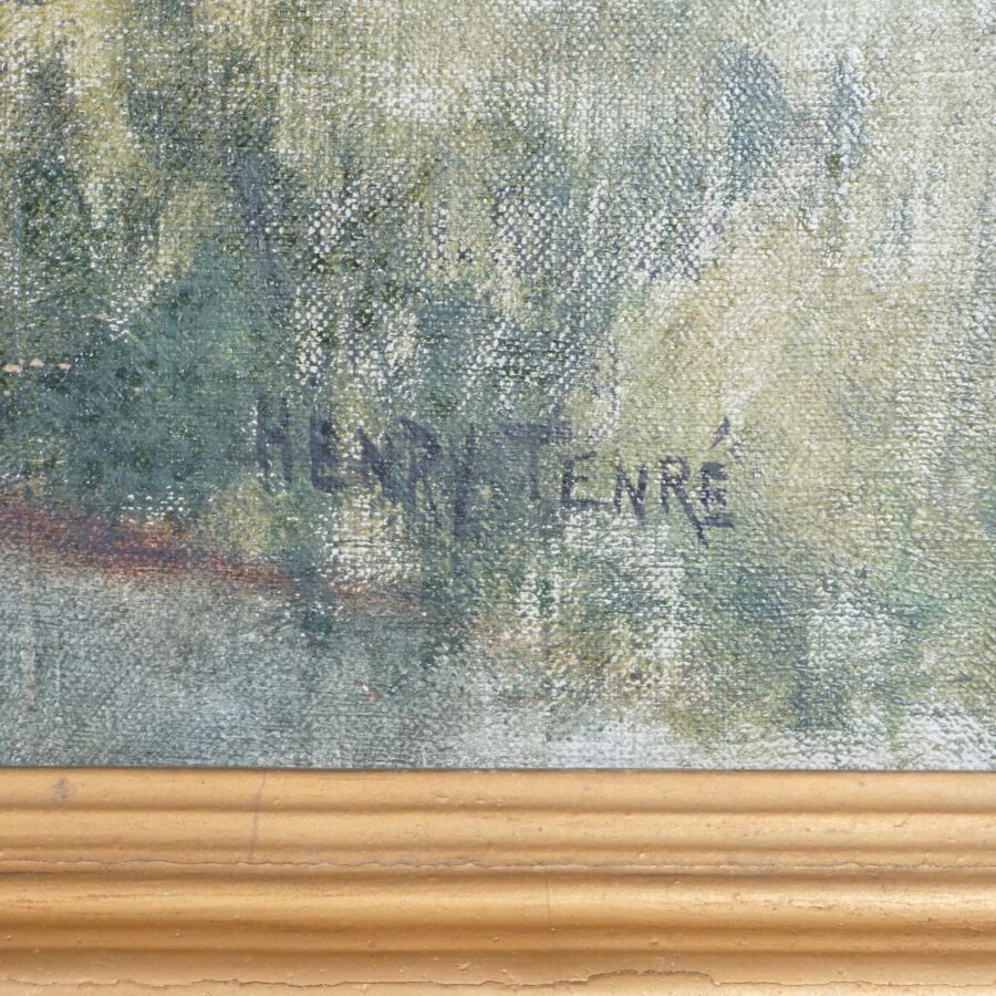 Henry TENRE (1854-1926), "Belvédère en bord de rivière", huile sur toile signée en bas à droite, 46.2 x 55 cm.