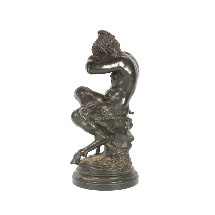 Henryk II KOSSOWSKI (1855-1921), "Satyre", sculpture en bronze à patine brune, signée en creux sur la terrasse, H. 51.5 cm.