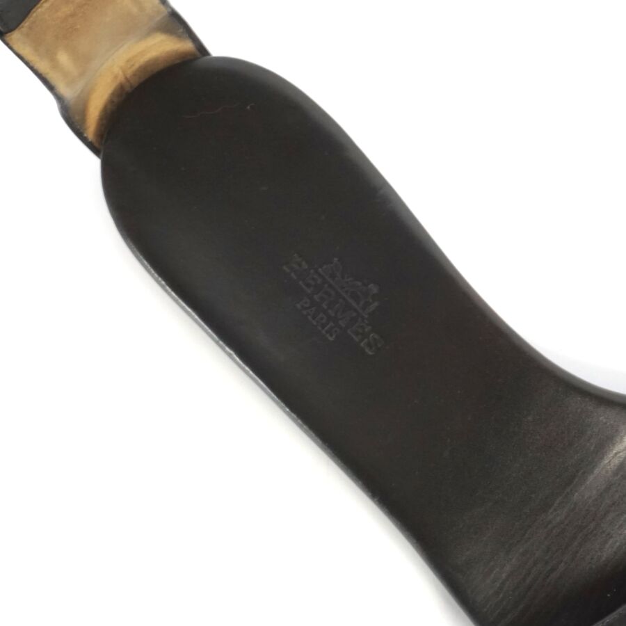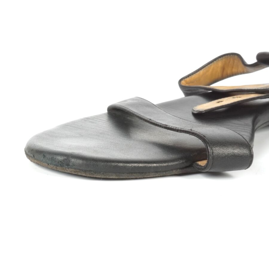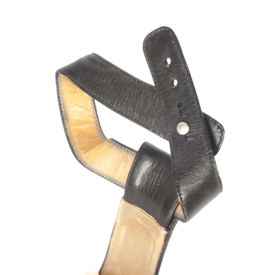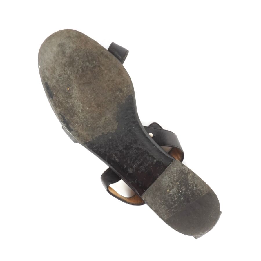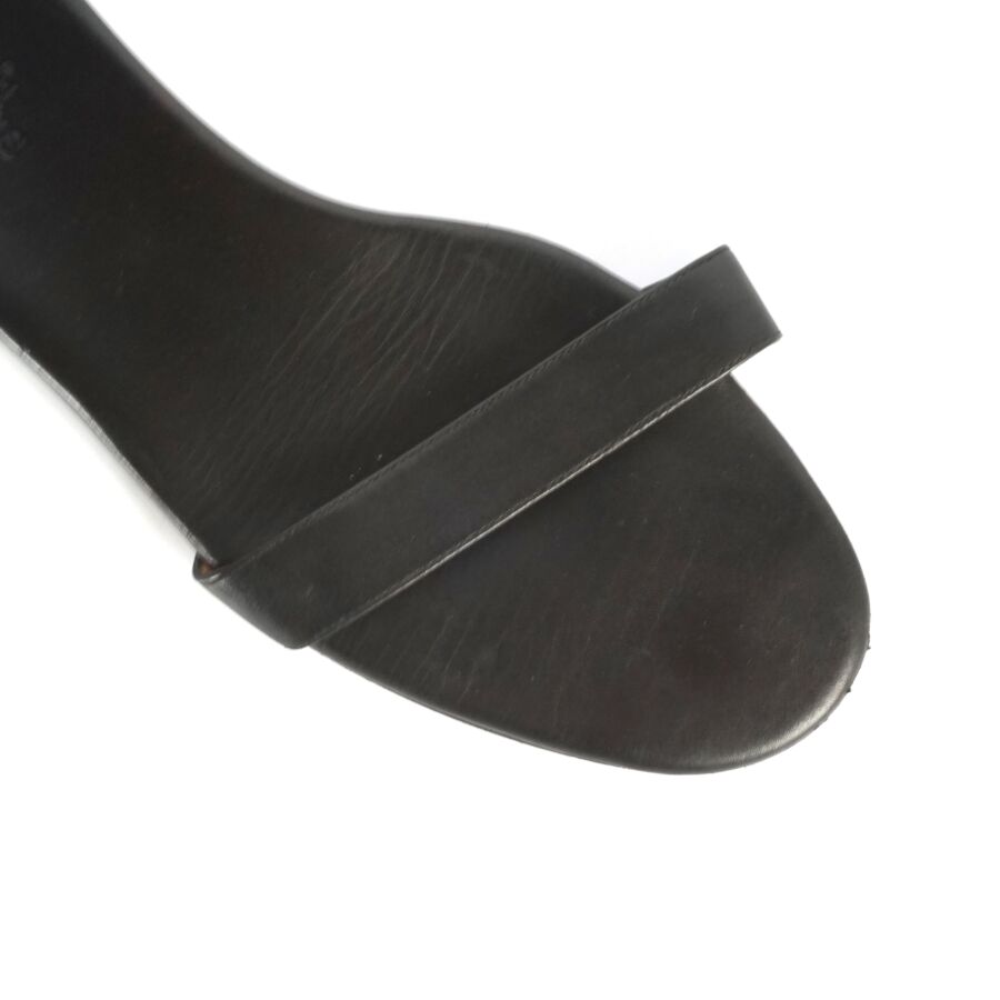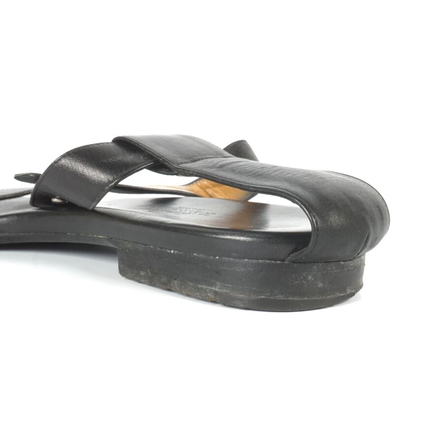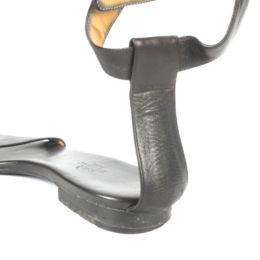 HERMÈS : Paire de sandales ouvertes en cuir lisse de couleur noire, attache montant à la cheville fermant à un bouton en métal, taille supposée 39, présentée dans leur dustbag d'origine (usures).