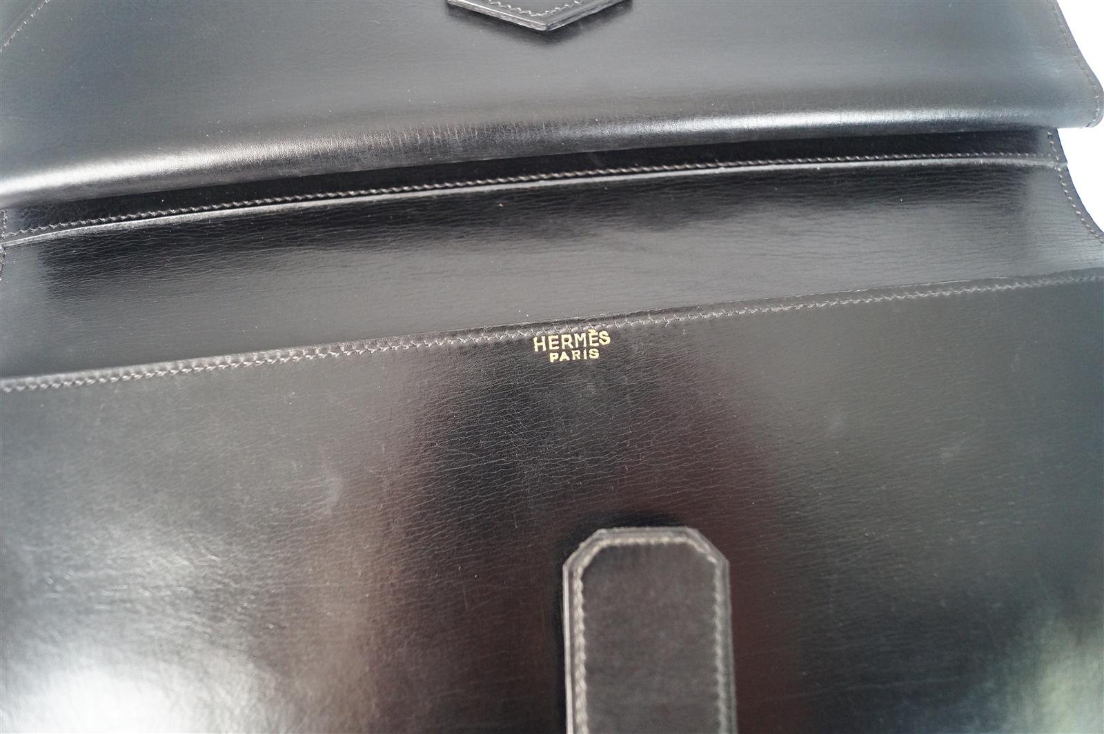HERMES : Pochette de carte routière rectangulaire en cuir noir, signée, L. 27 cm (usures d'usage).