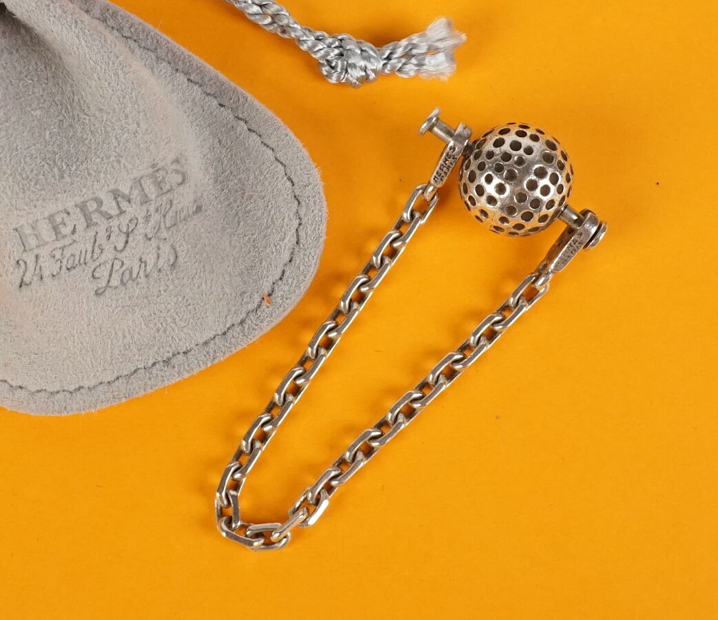 HERMES : Porte-clés en argent, formé d'une chainette maille forçat retenant une balle de golf. Poids brut : 13.2 g environ