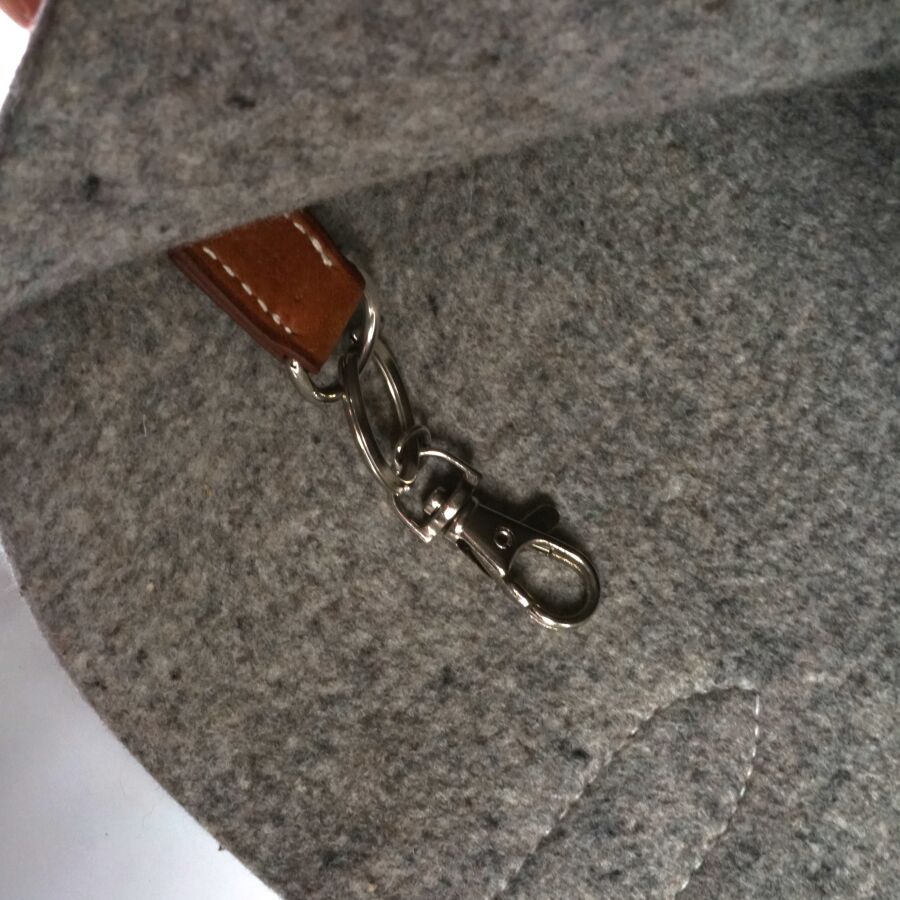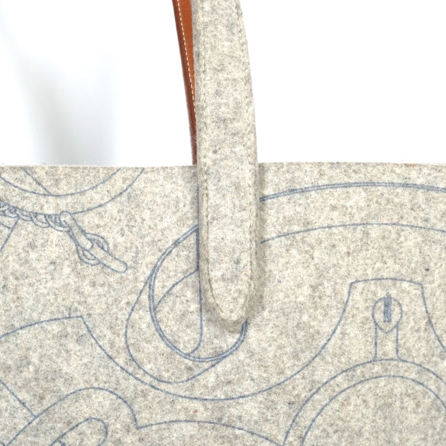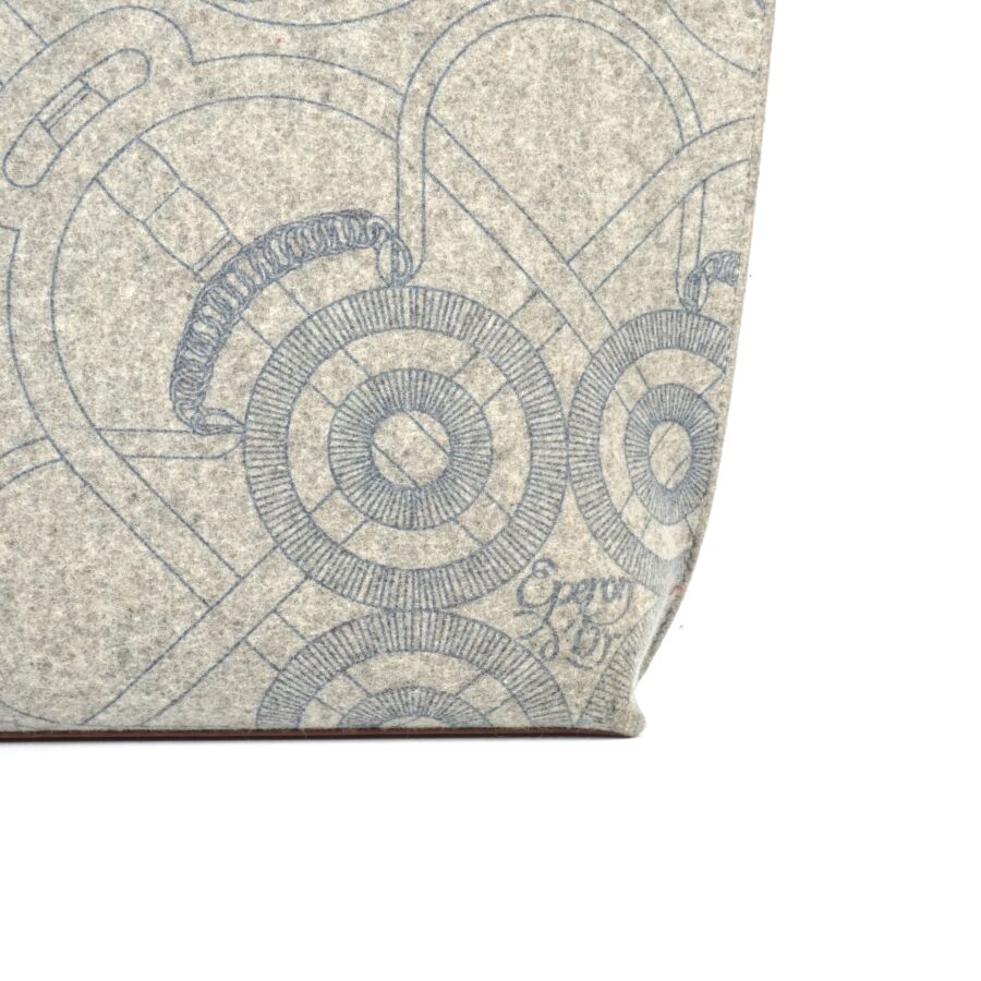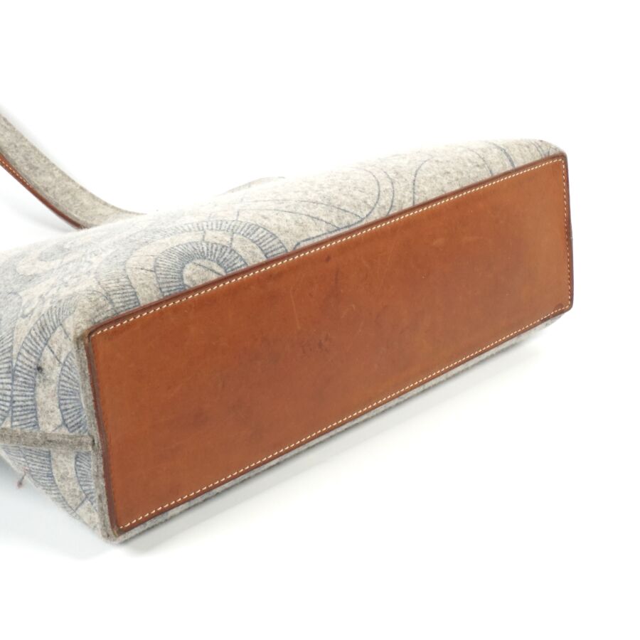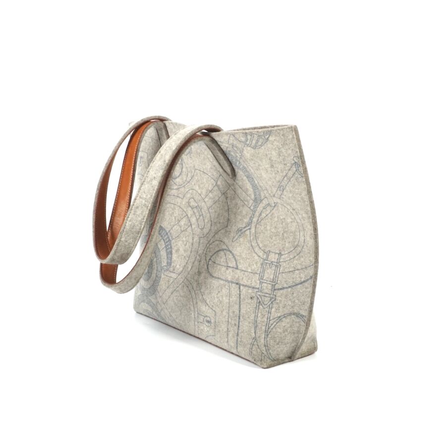 HERMÈS : Sac modèle "Karimi" en feutre gris à motif d'éperons, deux anses supérieures pour un porté épaule en feutre et cuir lisse marron, Dim. Hors anses : 30 x 40 x 11 cm (bel état, tache intérieure, petites traces).
