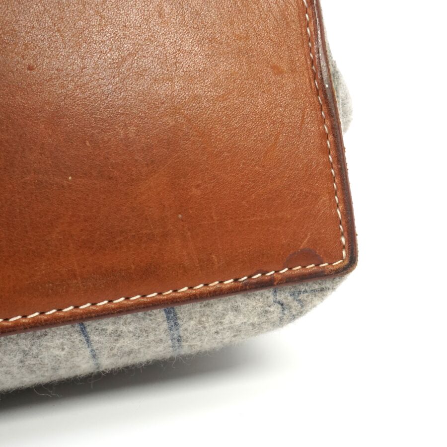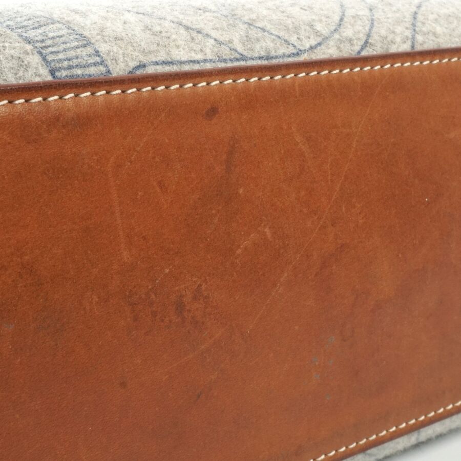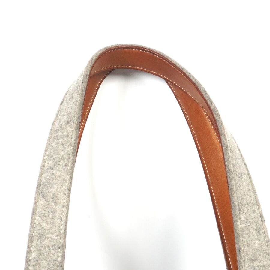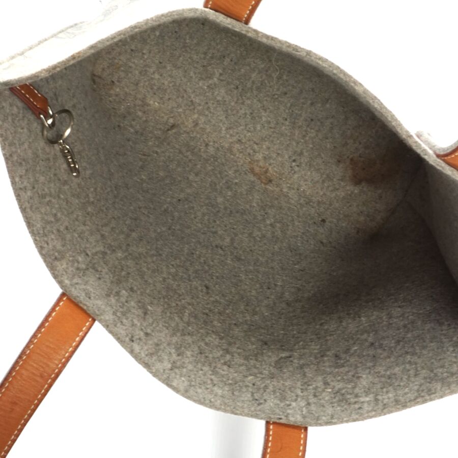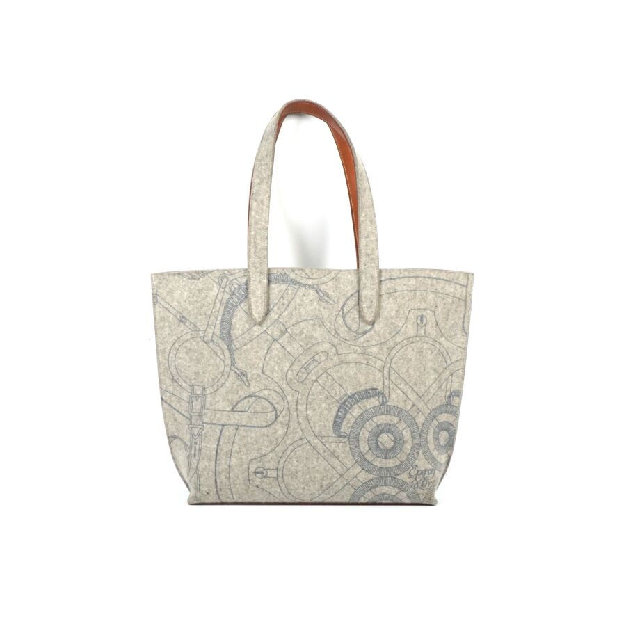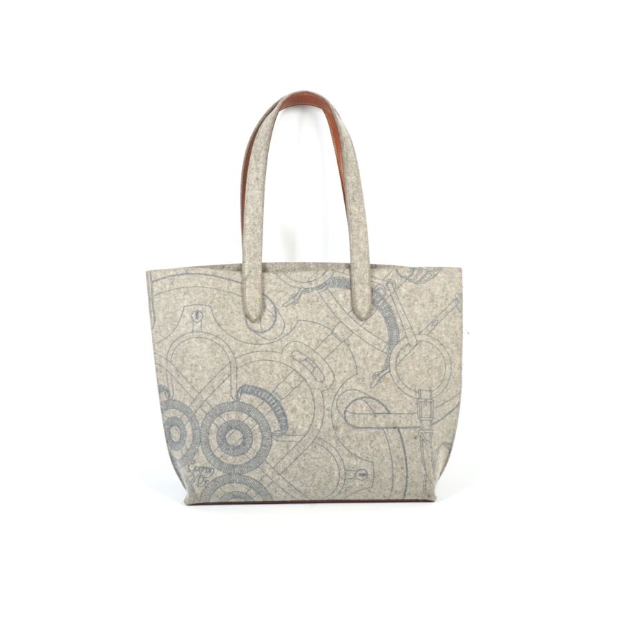 HERMÈS : Sac modèle "Karimi" en feutre gris à motif d'éperons, deux anses supérieures pour un porté épaule en feutre et cuir lisse marron, Dim. Hors anses : 30 x 40 x 11 cm (bel état, tache intérieure, petites traces).