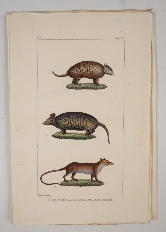 [HISTOIRE NATURELLE] - [BUFFON (Georges-Louis Leclerc, comte de)] - Ensemble de 114 gravures XIXème siècle de format In-8° rehaussées en couleurs (dont 37 d'oiseaux), certaines gommées, en majorité d'animaux, en feuilles servant à illustrer les oeuvres du naturaliste - 22,50x14,70 cm - Très bel état.