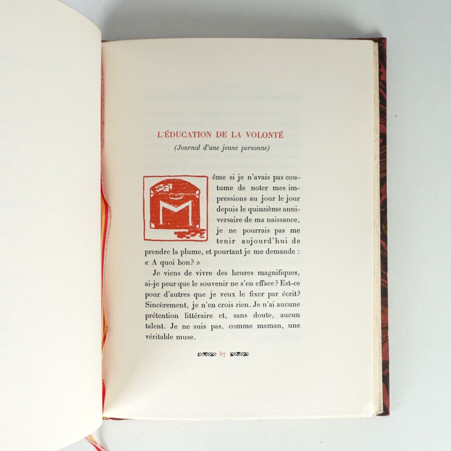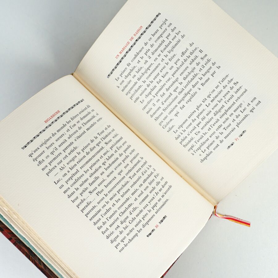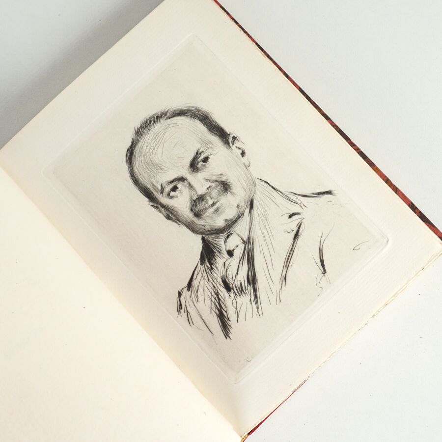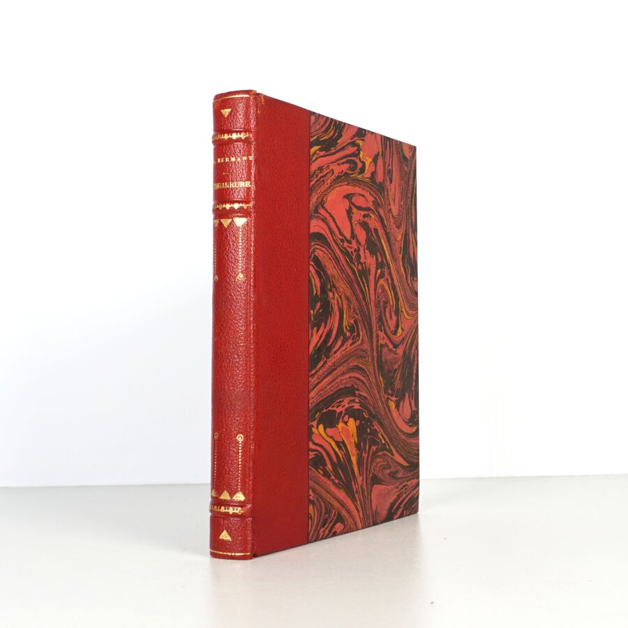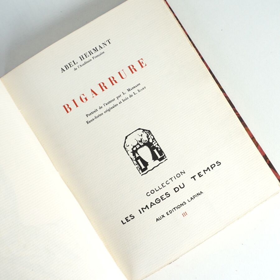 ICART (Louis) & HERMANT (Abel). Bigarrure. Portrait de l'auteur par L. Madrassi. Eaux-fortes originales et bois de L. Icart. Paris, Lapina, coll. Les Images du Temps, 1928. In-8 demi-chagrin rouge, dos à nerfs orné, titre doré, couv. et dos conservés.