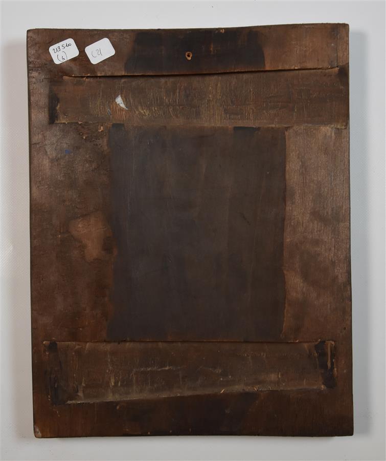 Icône russe représentant une Sainte accompagnée de 2 anges et de 8 apôtres, 34 x 27 cm, début 20ème siècle