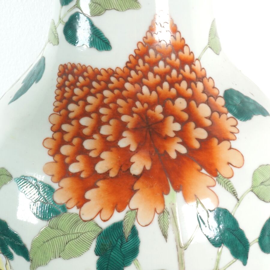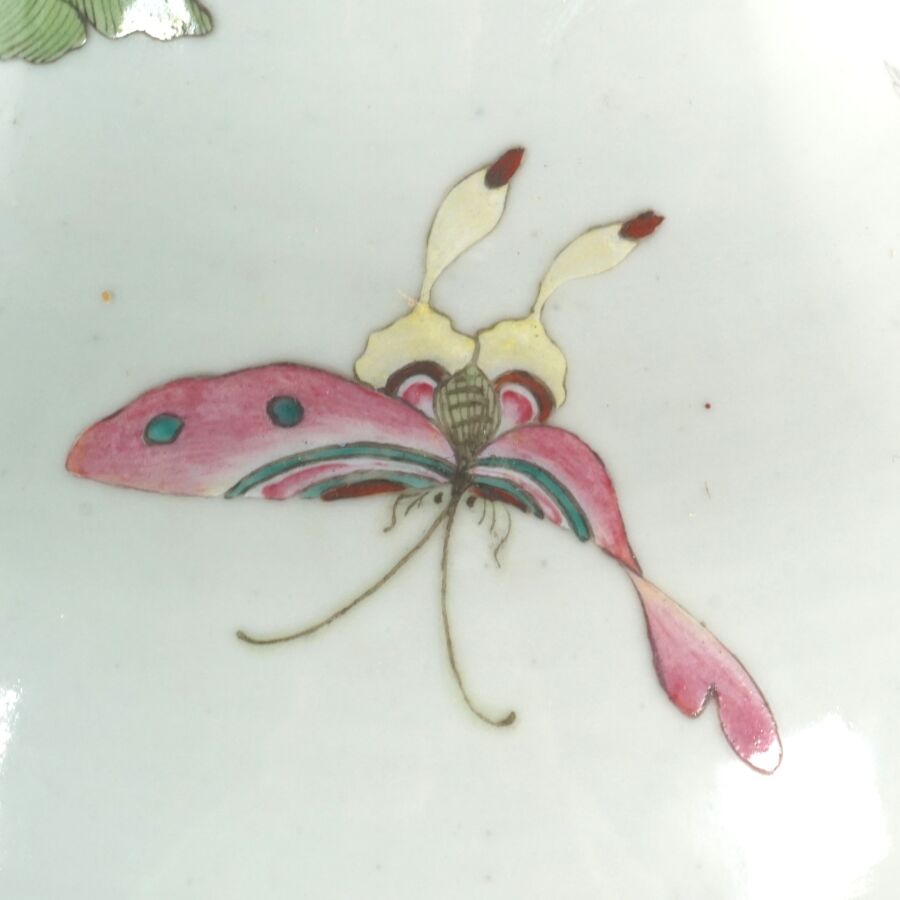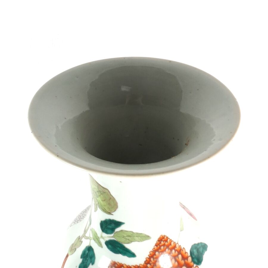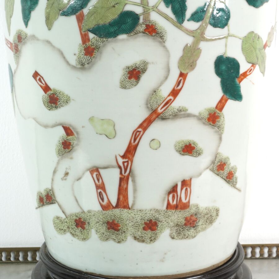 Important vase de forme balustre en porcelaine et émaux polychromes à décor de pivoines épanouies et papillon, Chine, circa 1900, H. 61 cm (petit défaut de cuisson).