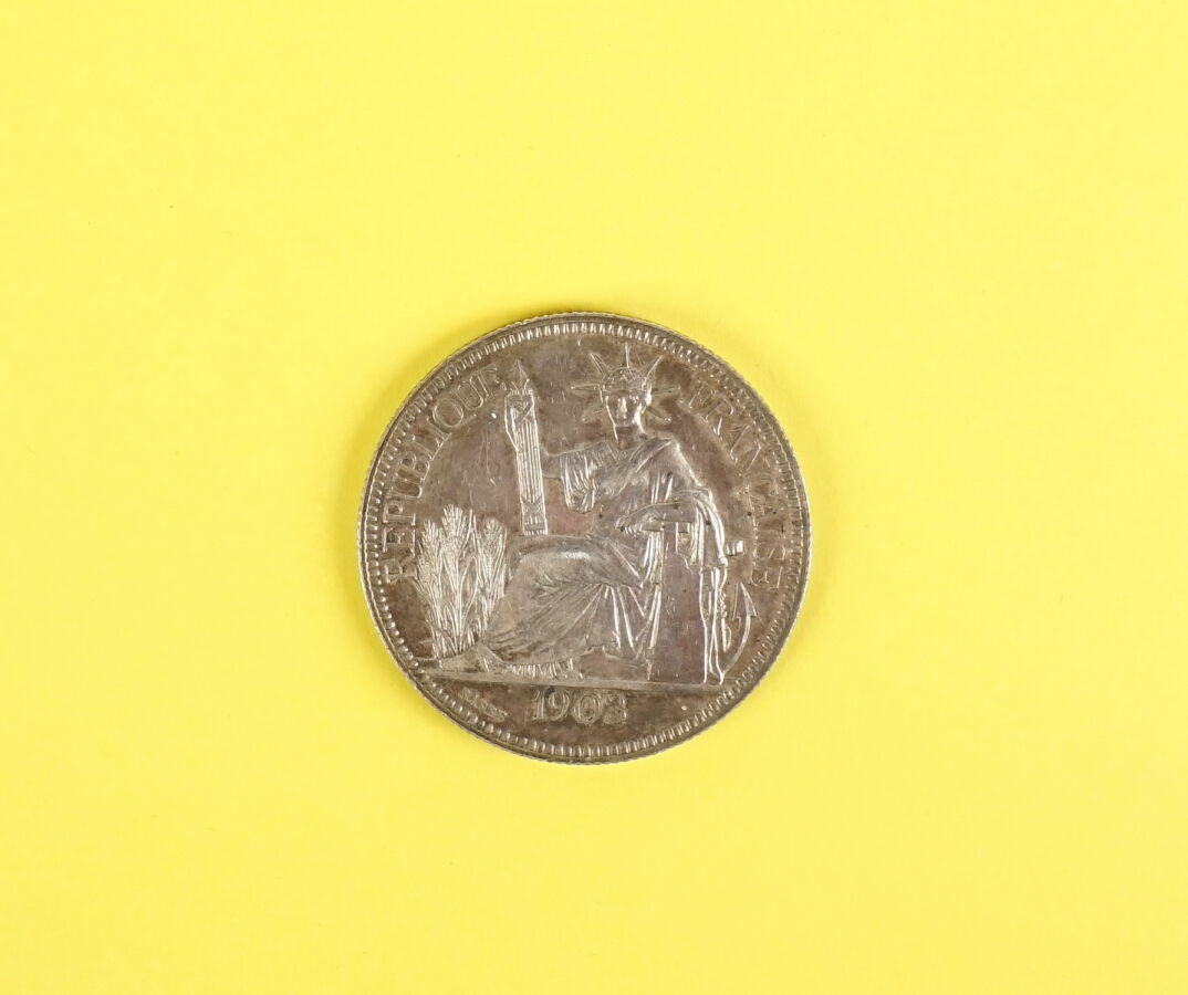 Indochine Française : Piastre de Commerce 1903 A Paris, Ag, 26,94 gr. TTB+. Lec indo 286