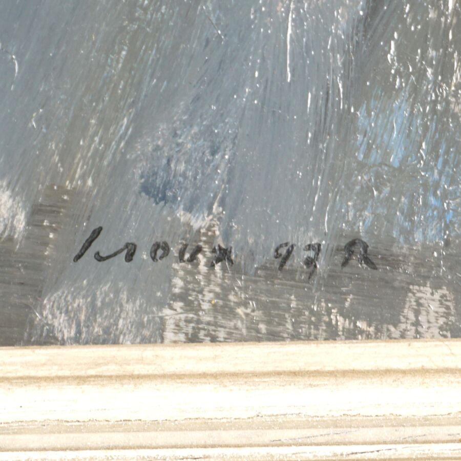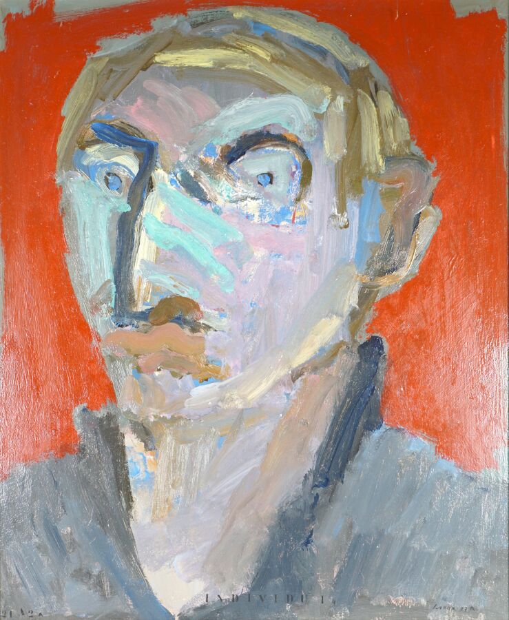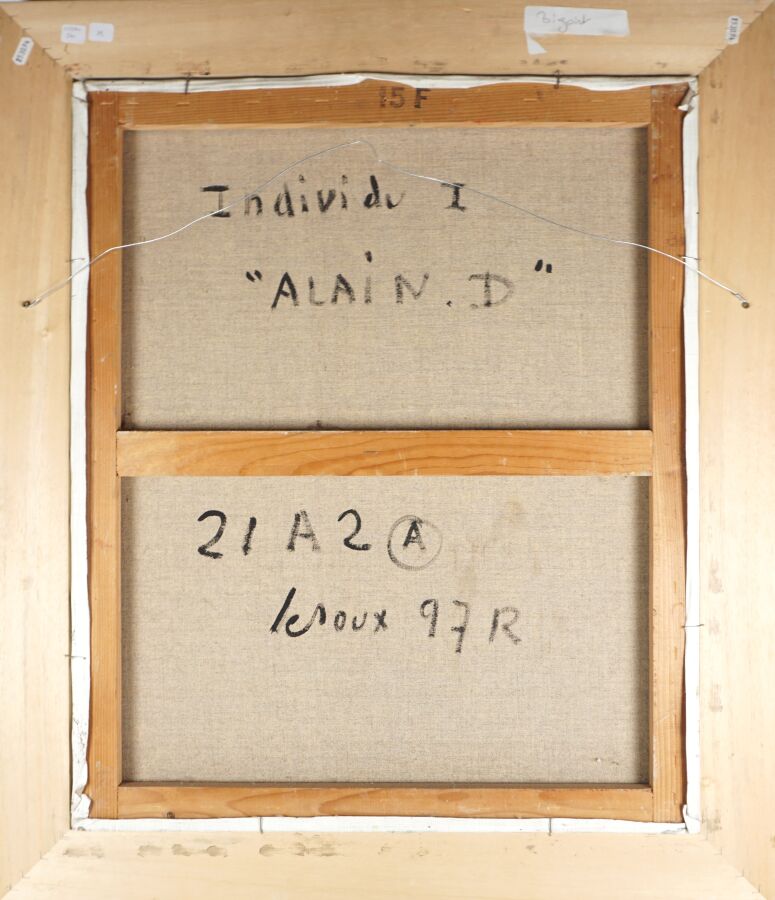 INOUX (XXe), "Individu I", huile sur toile signée en bas à droite, titrée et contresignée au dos, 65 x 54 cm.