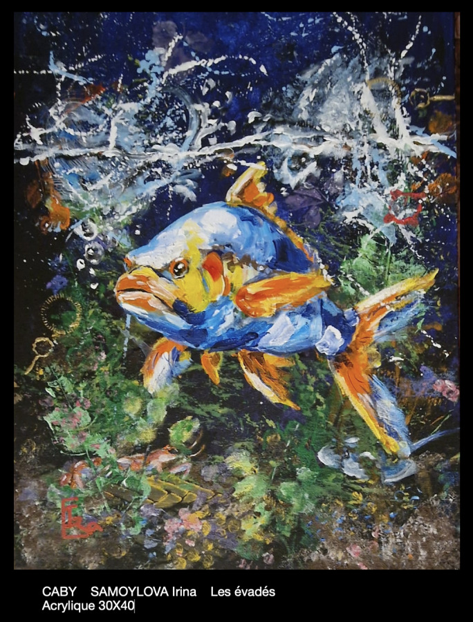 Irina CABY SAMOYLOVA, "Les Évadés 2024, acrylique signée du monogramme de l'artiste en bas à gauche, 30 x 40 cm.