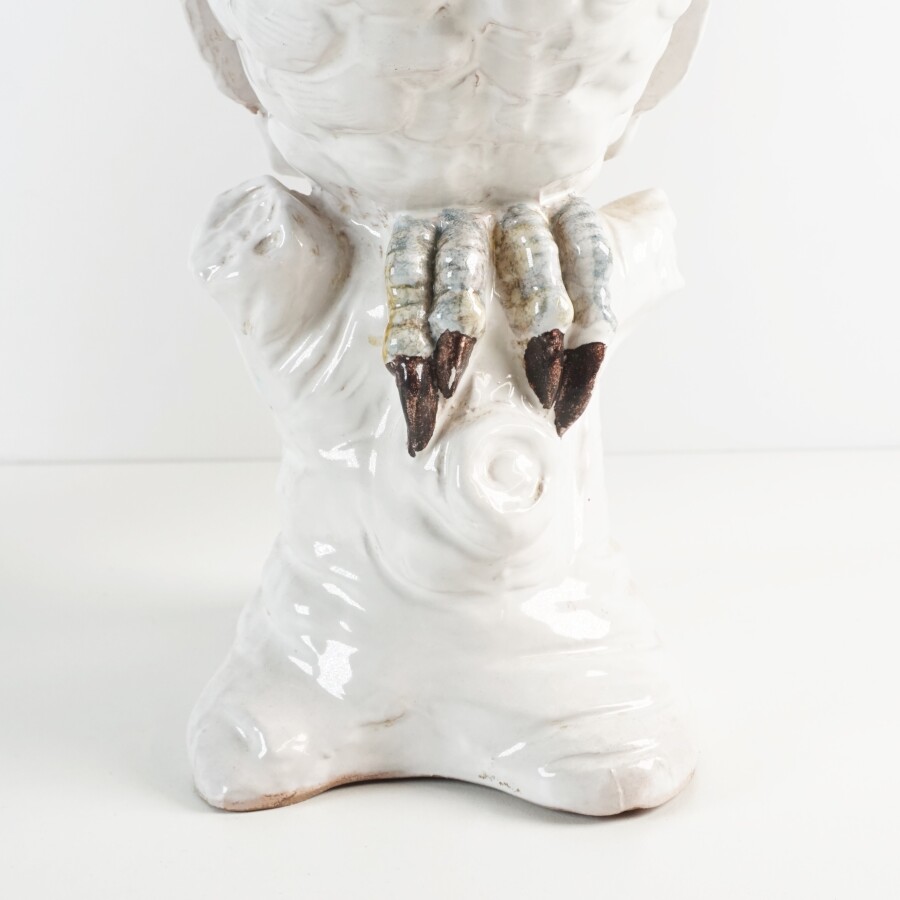 ITALIE : Cacatoès, paire de sculptures en faïence émaillée polychrome, marqués dessous, H. 43.5 cm.
