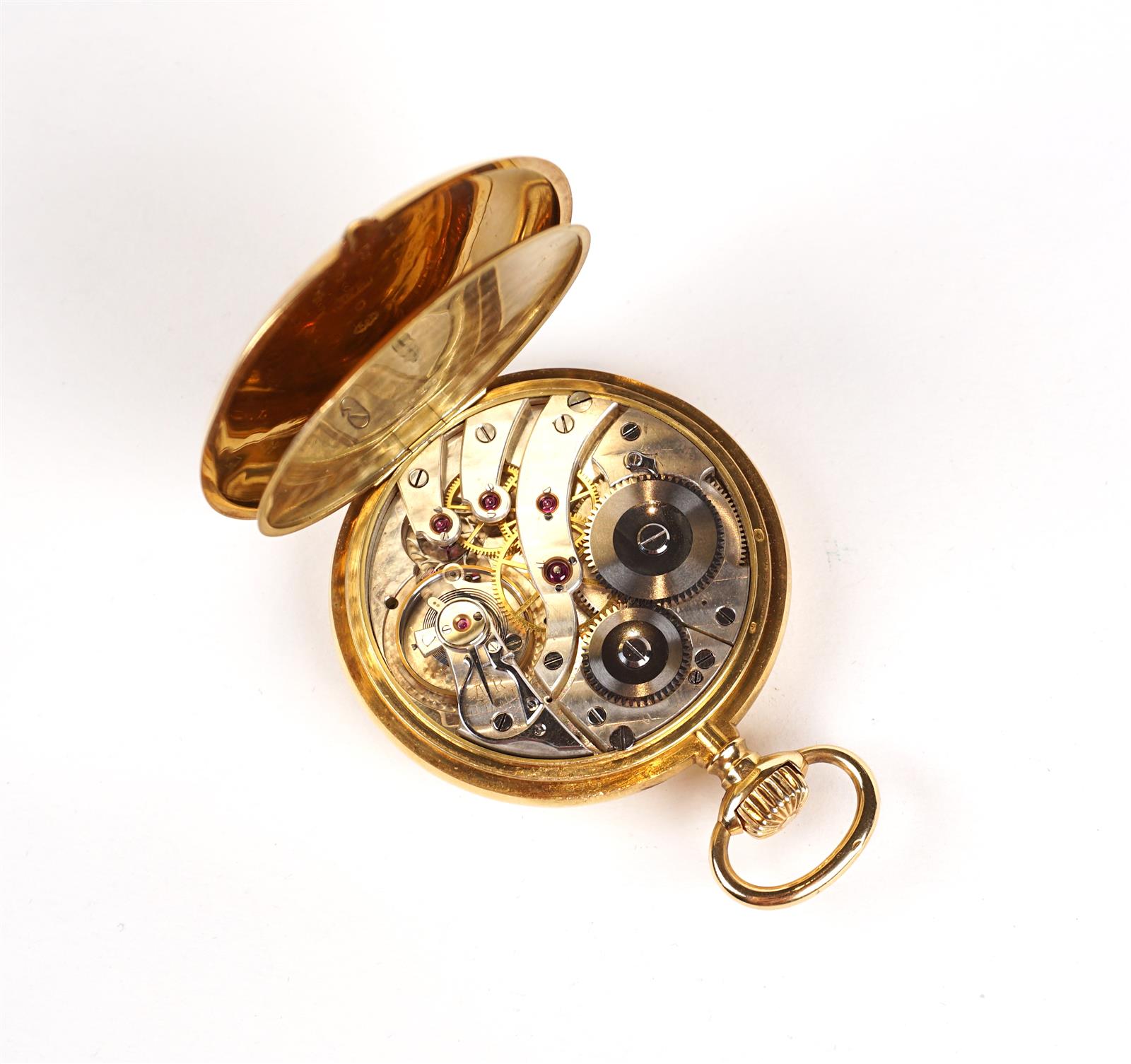 J.J. BADOLLET à Genève : Montre à gousset Suisse en or jaune 18 K (750/oo), cadran émaillé blanc chiffres arabes, cadran des secondes, signée. Poids brut : 80.50 g environ. (état de marche).