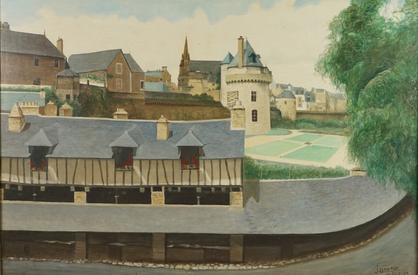J. LEONARD, " Les remparts de Vannes", une huile sur toile et une huile sur panneau, signées en bas à droite et l'une datée du 22.02.59, 38 x 61 cm et 42 x 62 cm.
