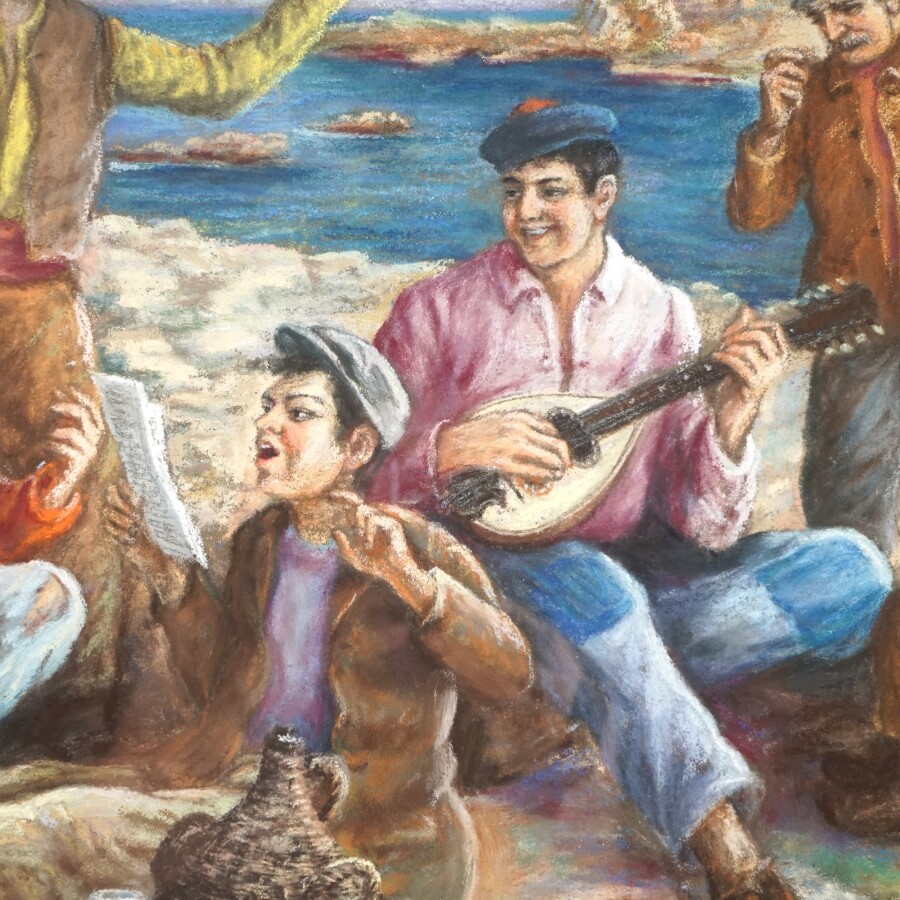 J. VIRET (XXe), "Chant marin", pastel, signée en bas à droite, 55,5 x 73 cm.