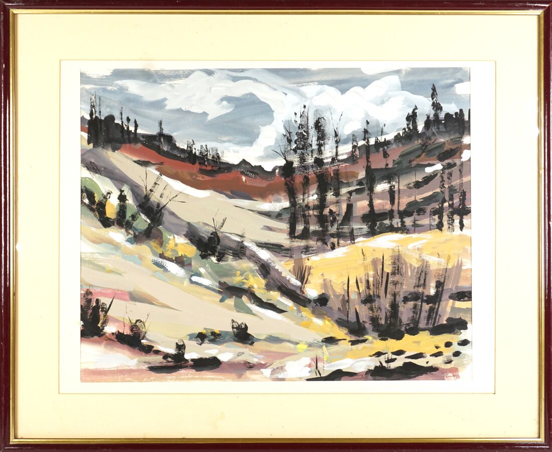 Jacques BRENNER (1936), "Paysage montagneux", gouache signée en bas à droite, 40 x 49 cm (à vue).