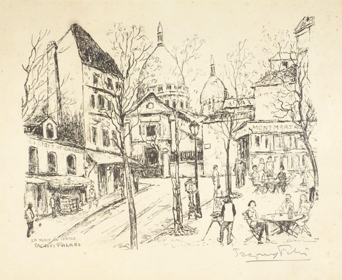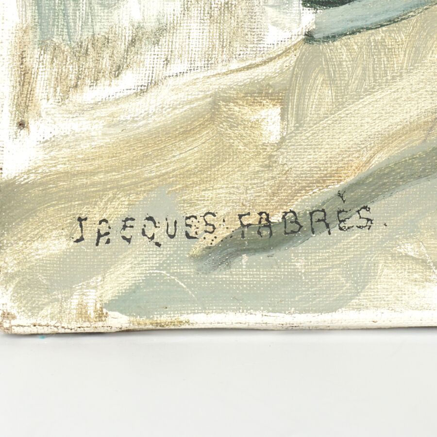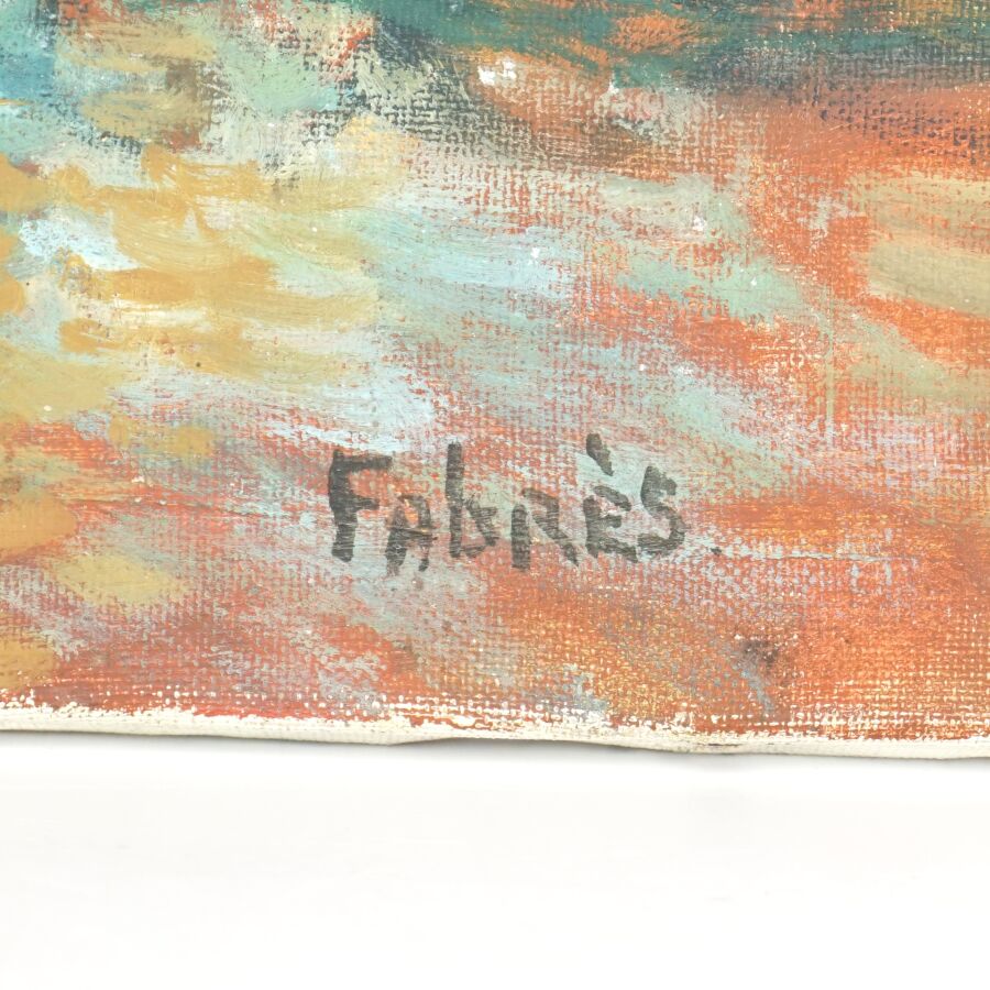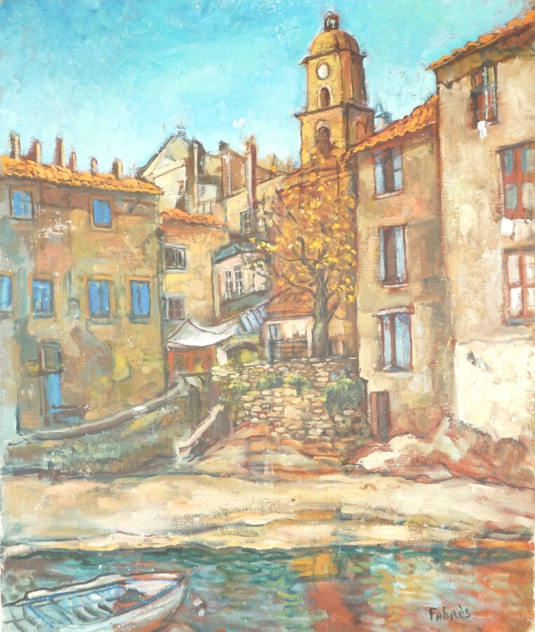 On y joint Jacques FABRÈS (XXe), "Place des arts" et "Vues d'un village du sud-ouest ", deux huiles sur toile signées en bas, 54 x 65 cm et 55 x 46 cm (rayures).