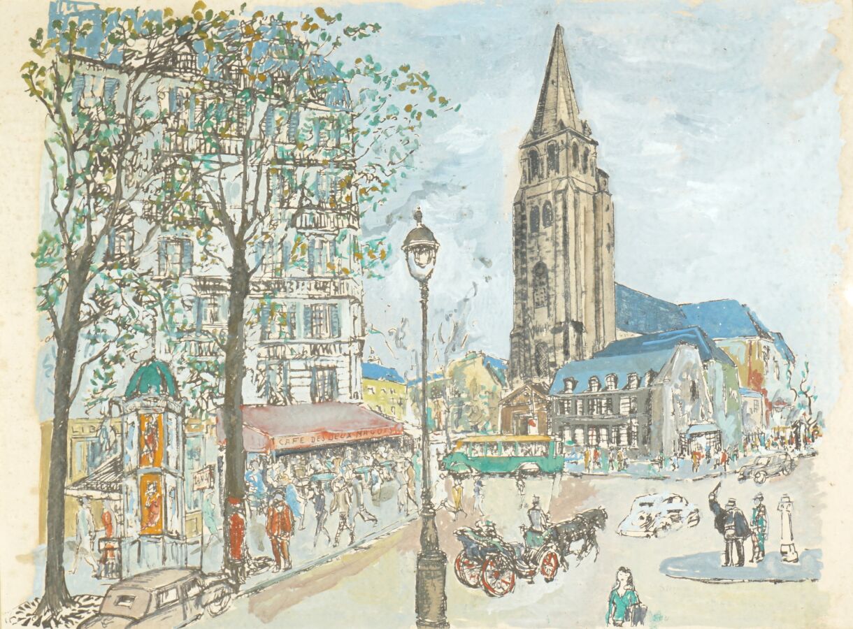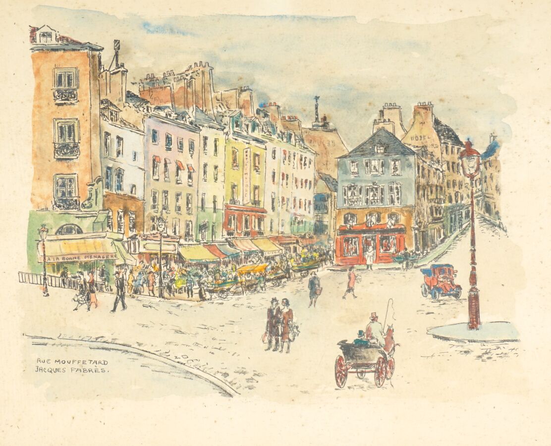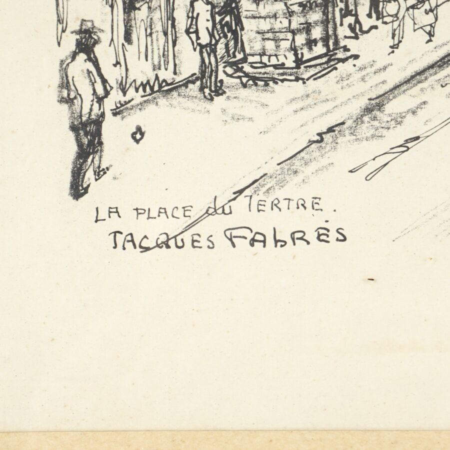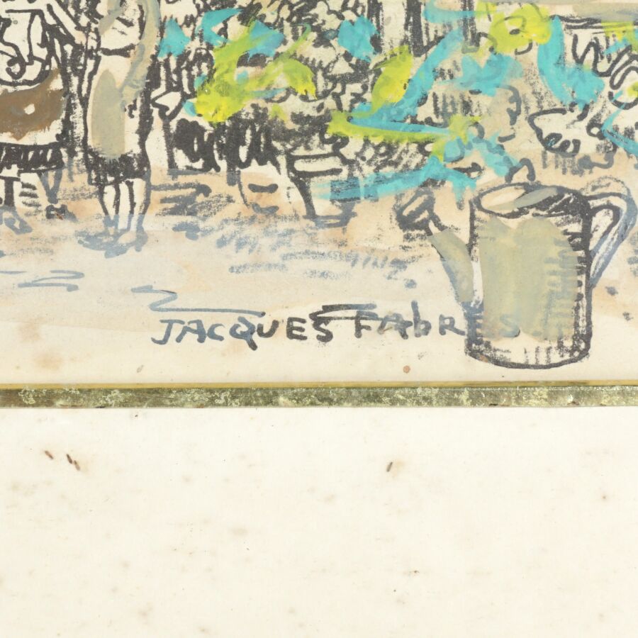 On y joint Jacques FABRÈS (XXe), "Place des arts" et "Vues d'un village du sud-ouest ", deux huiles sur toile signées en bas, 54 x 65 cm et 55 x 46 cm (rayures).