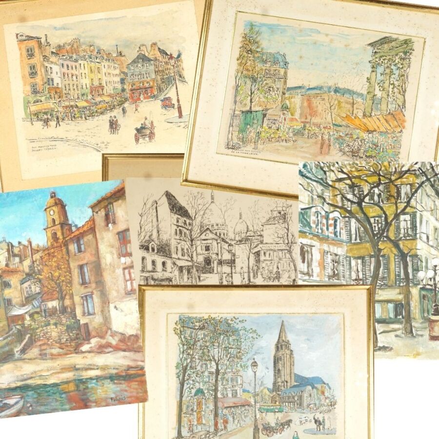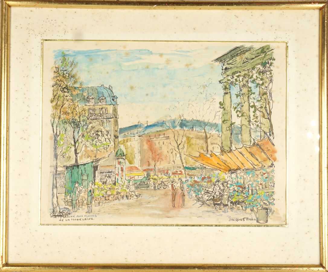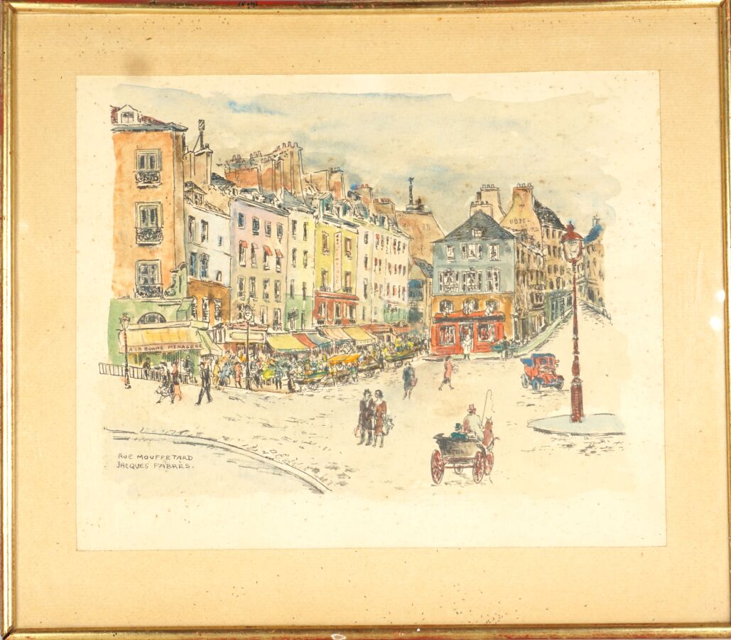 Jacques FABRÈS (XXe), "Vues de Paris", quatre aquarelles sur papier signées et situées en bas, 29 x 35 cm environ (à vue) (rousseurs).