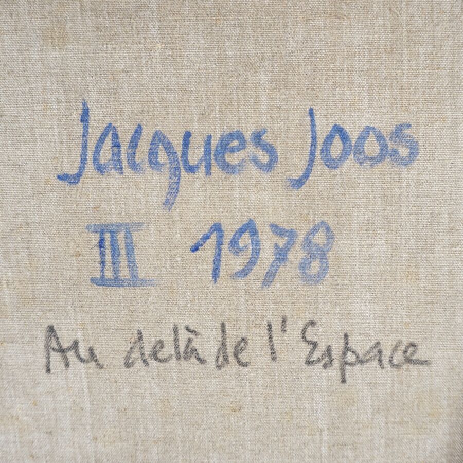 Jacques JOOS (1945-2021), "Au-delà de l'Espace", 1978, huile sur toile, signée et datée en bas à gauche et signée, datée et titrée, datée au dos, 73,5 x 54,5 cm.