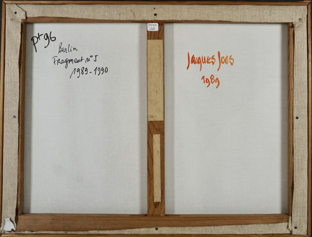 Jacques JOOS (1945-2021), "Berlin - Fragment n°1", 1989, technique mixte sur toile, signée en bas à droite, signée, titrée et datée au dos, 45,5 x 61 cm.
