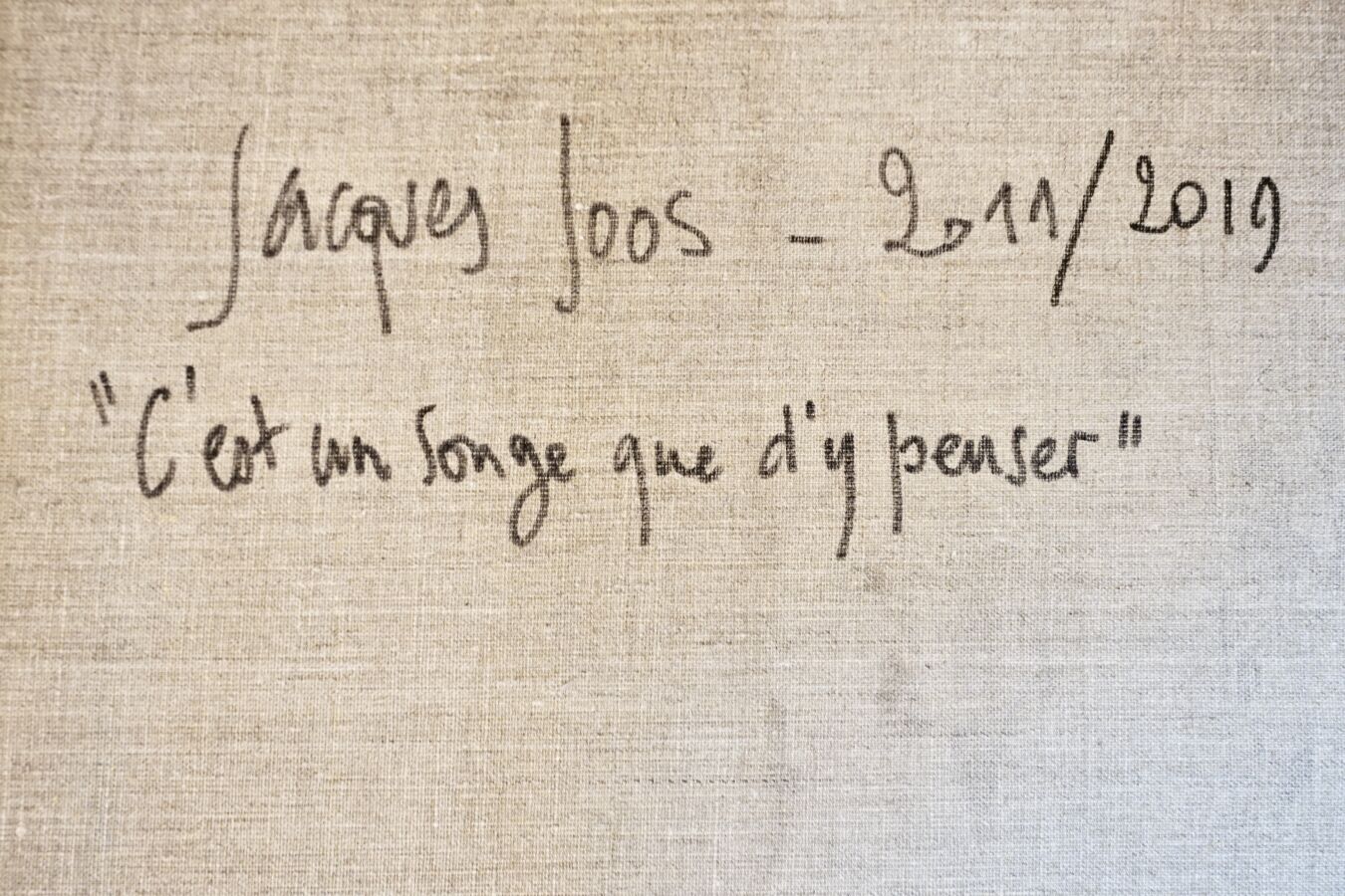 Jacques JOOS (1945-2021), " C'est un songe que d'y penser " 2011-2019, technique mixte sur toile, signée, titrée, datée au dos, 96 x 130 cm.