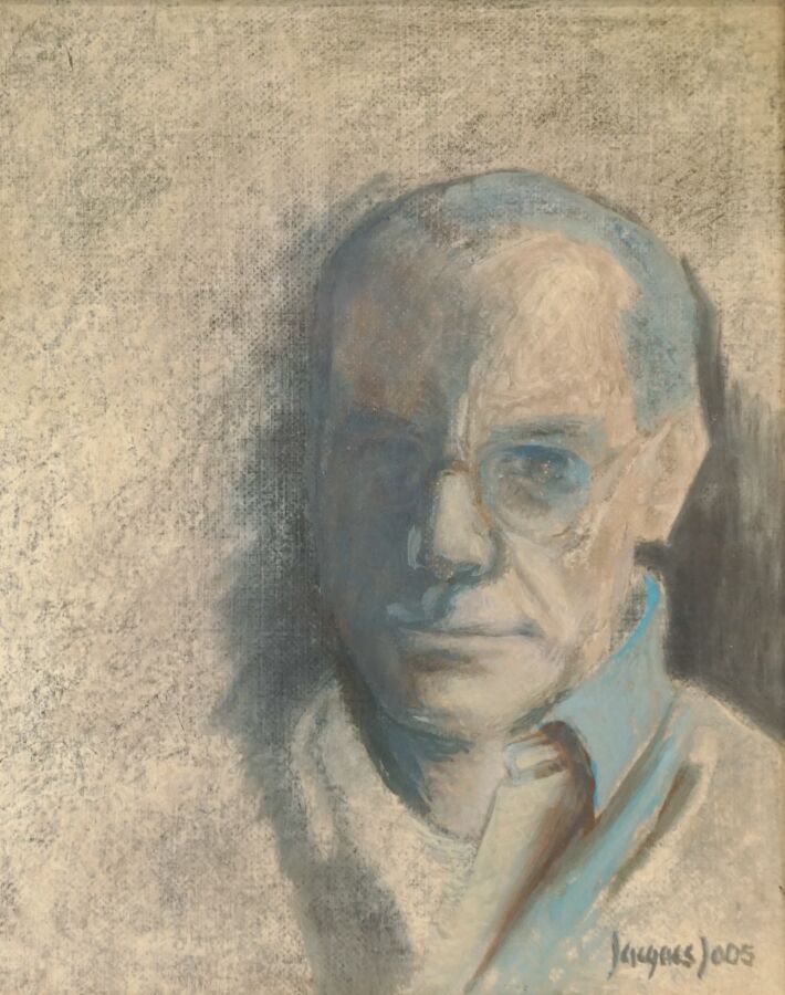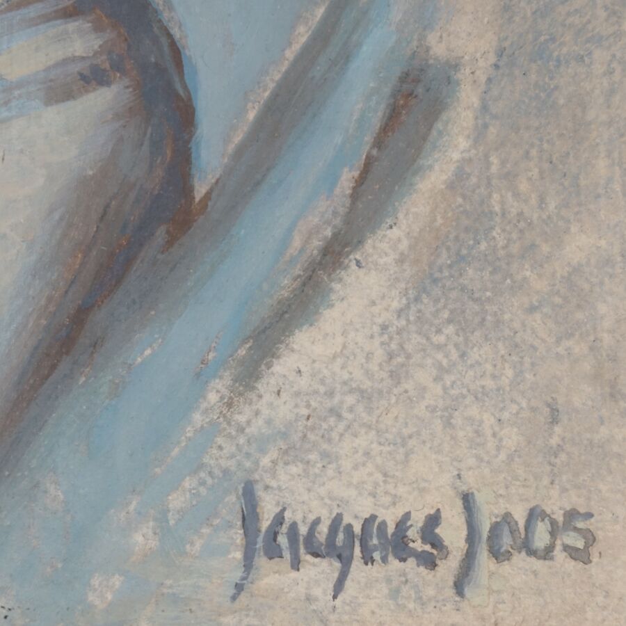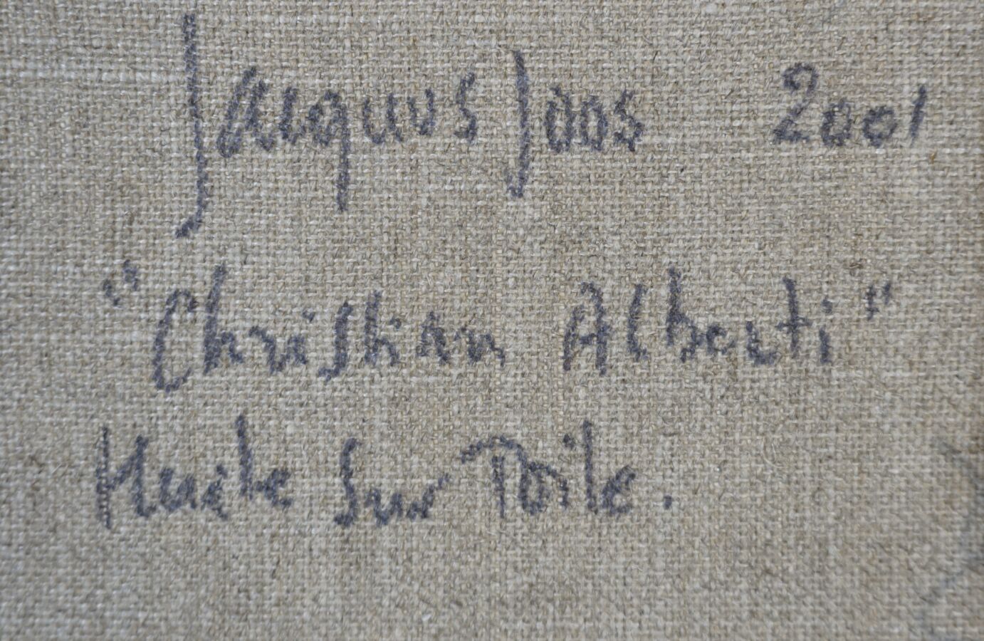 Jacques JOOS (1945-2021), "Christian Alberti", 2001, technique mixte sur toile, signée en bas à droite, signée, titrée et datée au dos, 27 x 22,5 cm.